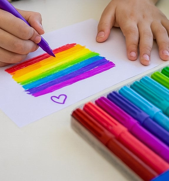 Suas pontas são firmes e resistentes, para durar bastante. Ainda assim, sua escrita é macia e suave. Têm excelente cobertura e as cores mais lindas e vivas que você vai encontrar. Além disso, para tranquilizar os papais e garantir um uso seguro pela criançada, as tampinhas são super bem fixadas e têm um design anti-asfixiante em caso de ingestão acidental.