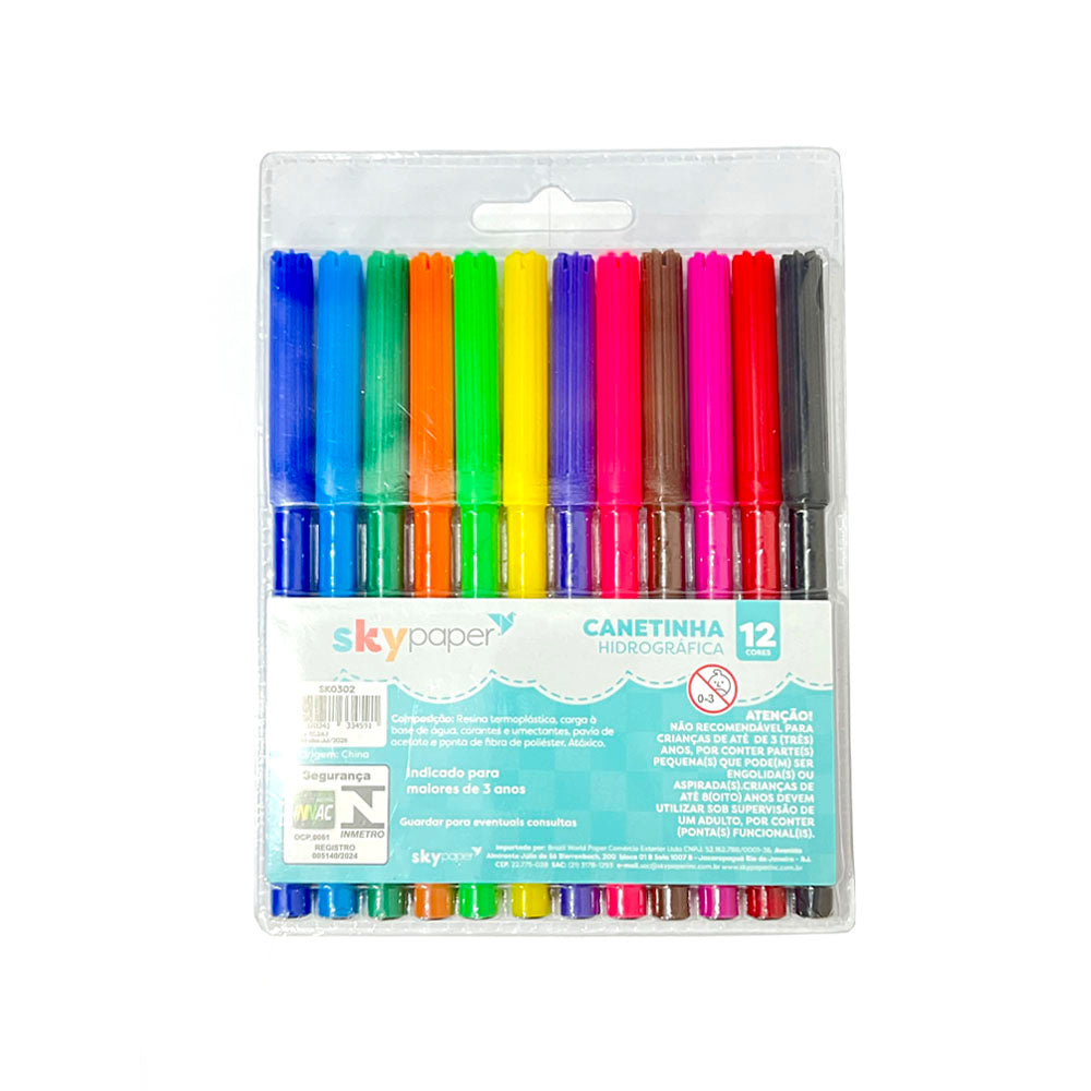 As canetinhas hidrográficas SkyPaper estimulam a criatividade das crianças, garantindo maior firmeza no momento da pintura. Possui cores vivas, tampa ventilada e antiasfixiante. Contém 12 cores vibrantes para colorir os seus desenhos!