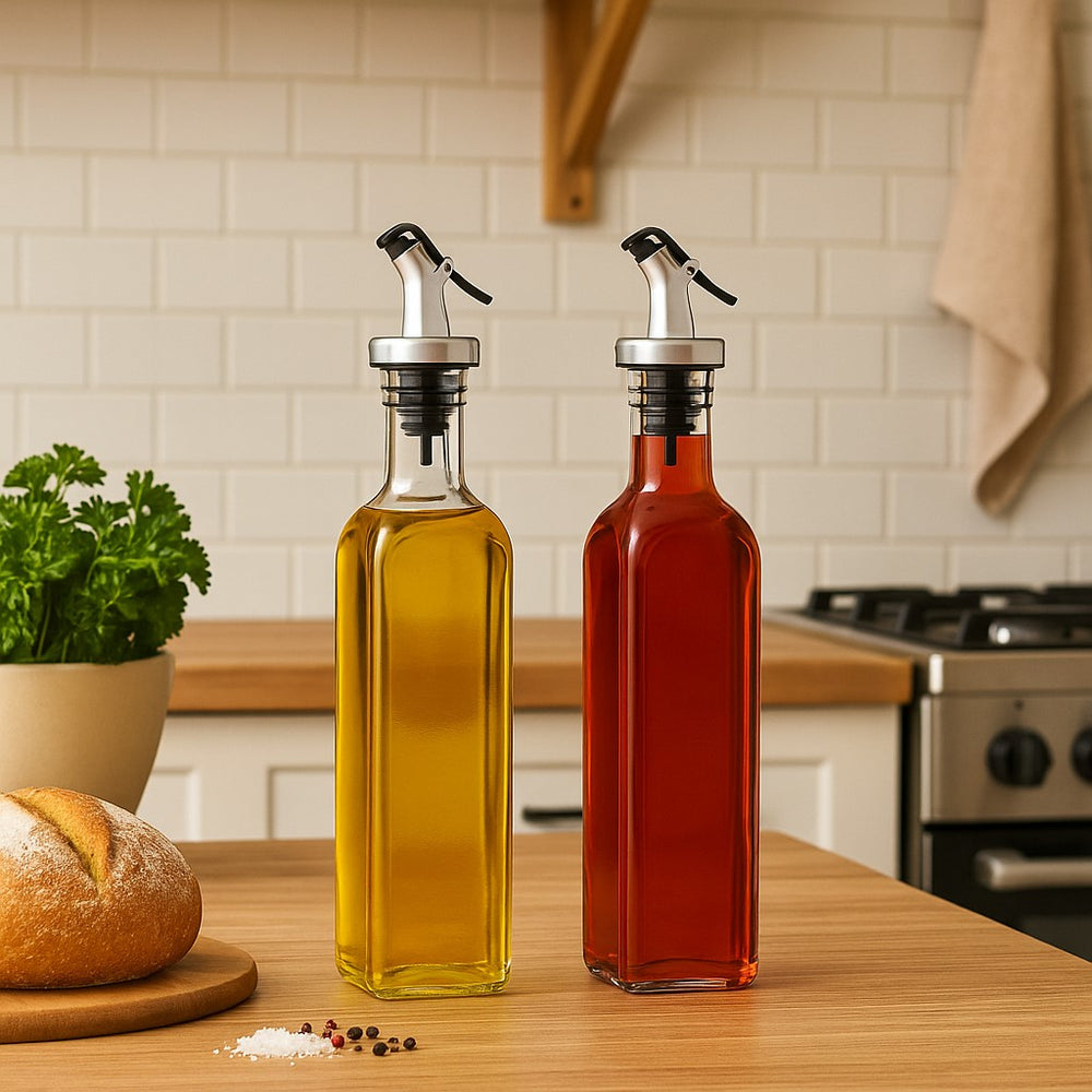 O Jogo de Galheteiro é ideal para armazenar e servir azeite, vinagre ou outros temperos líquidos de forma prática e sofisticada. Cada garrafa possui capacidade de 500ml e vem equipada com bico dosador de inox com tampa basculante, que garante maior controle no uso, evita desperdícios e preserva o sabor dos seus condimentos.