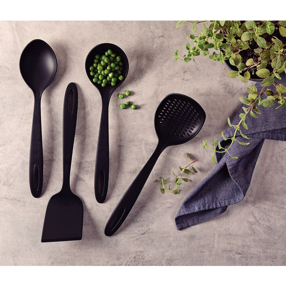 Jogo de Utensílios 4 Peças Tramontina é a escolha ideal para completar e garantir praticidade à sua cozinha! Ele possui quatro peças altamente funcionais produzidas em nylon, material que suporta temperaturas de até 180° graus e que as torna ideais para uso em superfícies com revestimentos antiaderentes e cerâmicos, pois não os danifica. Suas peças ainda são muito práticas de limpar e podem ser lavadas na máquina de lavar louças, facilitando suas tarefas na cozinha. Versatilidade e eficiência para sua cozinha, você encontra com a Tramontina!