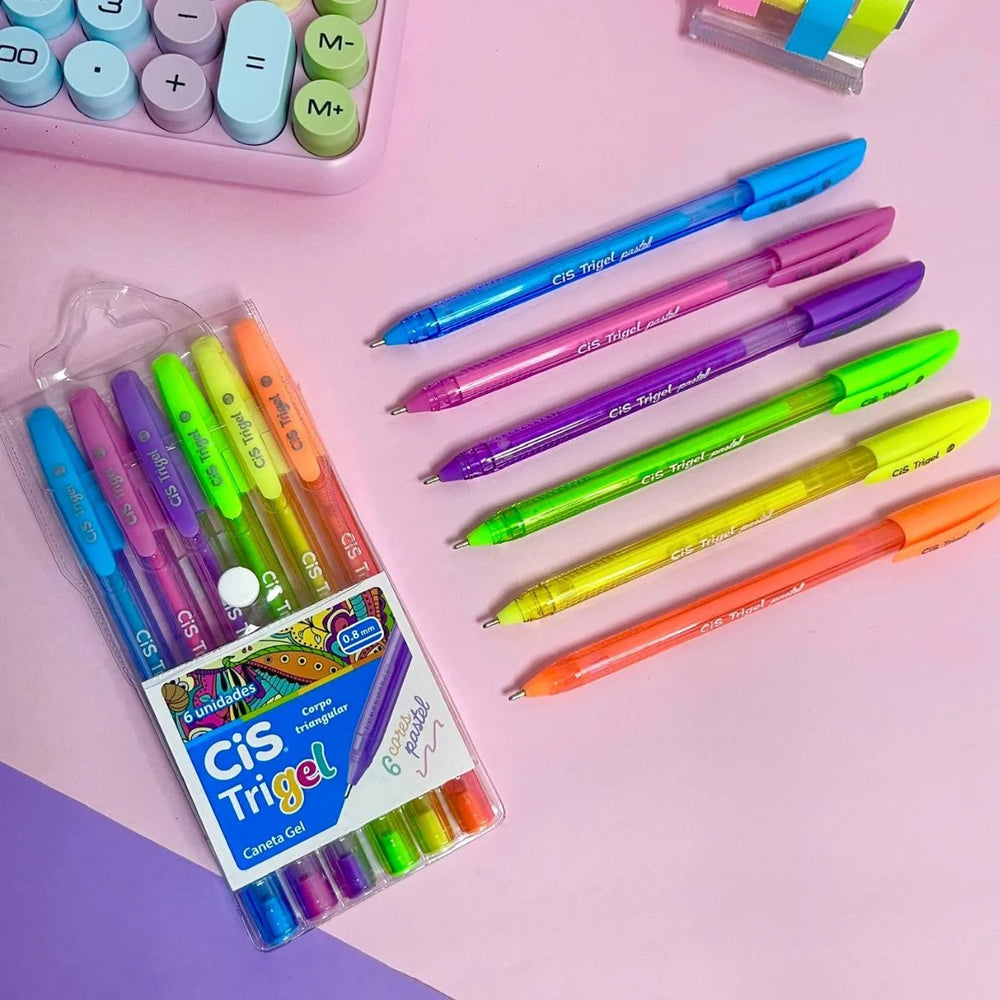 A Caneta CiS Trigel Pastel é ótima para enfeitar sua mesa de trabalho, para ser colecionada e garantir uma escrita macia. Você vai se encantar!