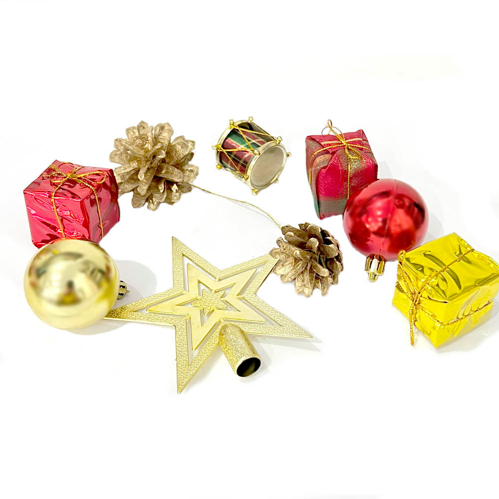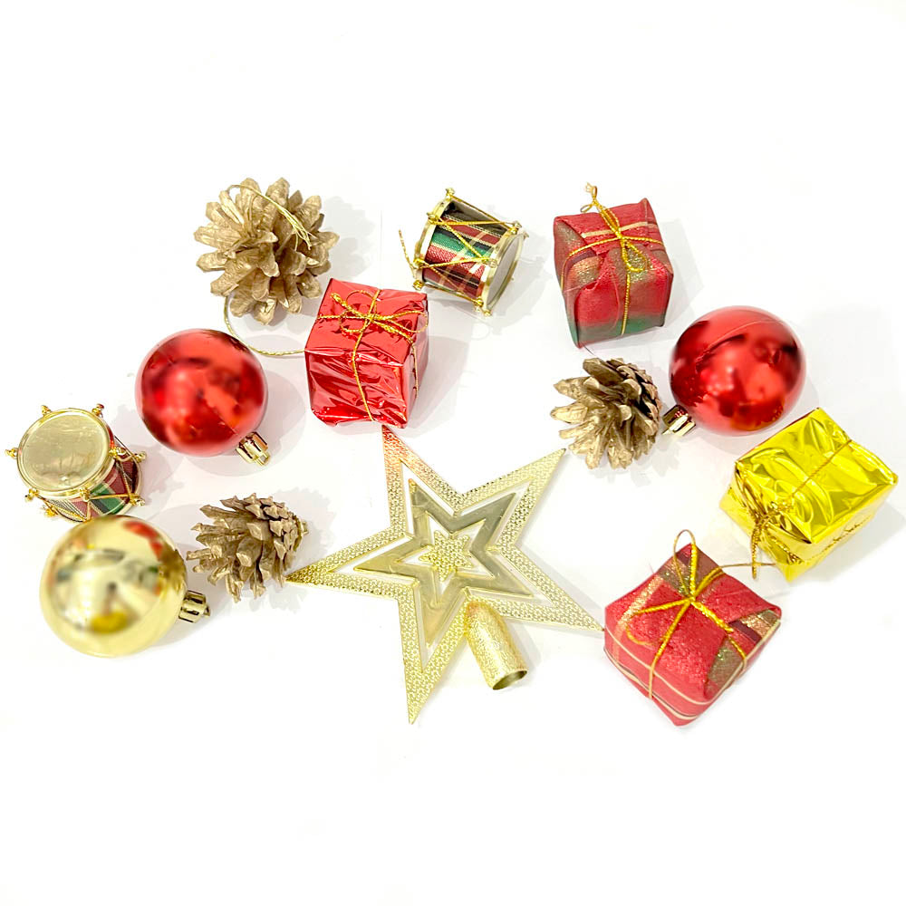Contém: 13 peças (12 enfeites sortidos + 1 ponteira)
