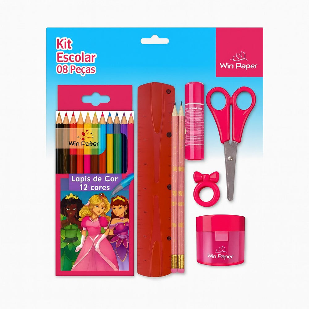O Kit Escolar WinPaper 8 Peças é perfeito para acompanhar as crianças no dia a dia escolar, reunindo itens práticos e divertidos em um só conjunto. Com design colorido e estampa temática de princesas e Fundo do mar, traz tudo o que é essencial para estimular a criatividade e organizar as atividades na escola.
