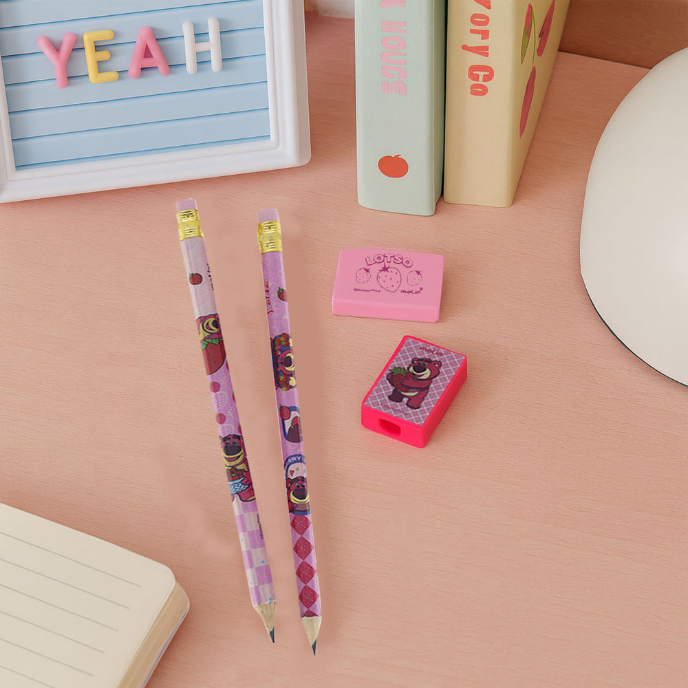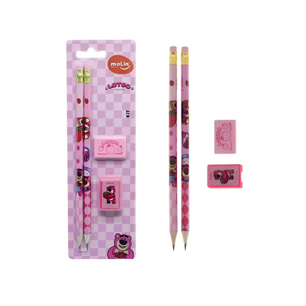 Kit Escolar Urso Lotso Toy Story 4 peças Lápis Borracha Apontador Molin