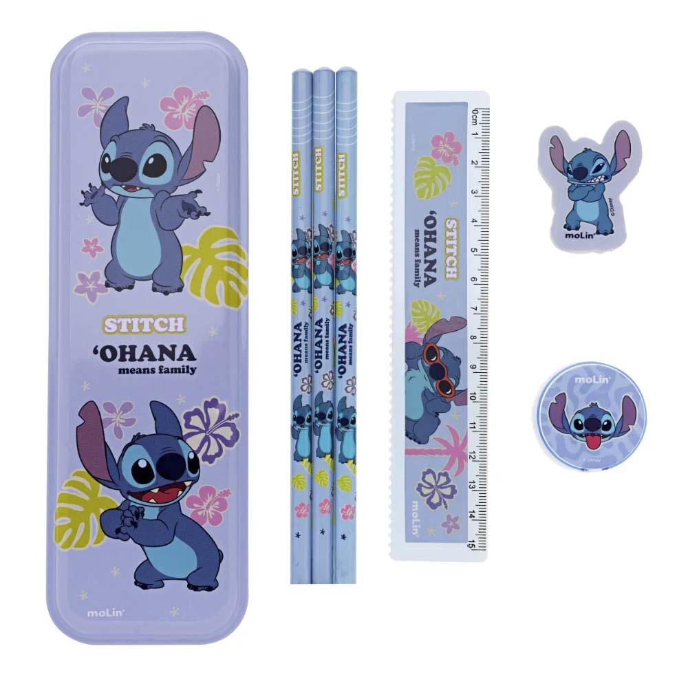 Esse kit é perfeito e completo para os fãs do Stitch, com itens essenciais para o dia a dia na escola ou em casa, em um formato compacto e organizado.