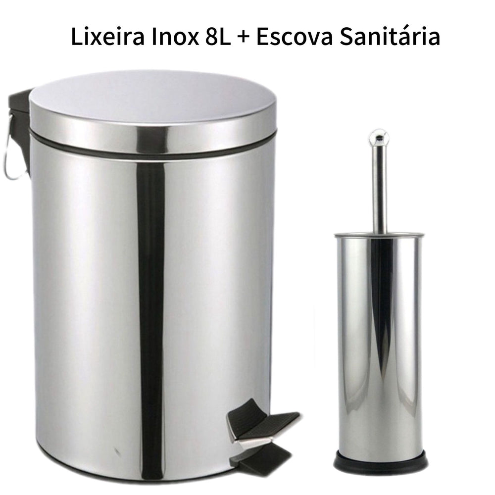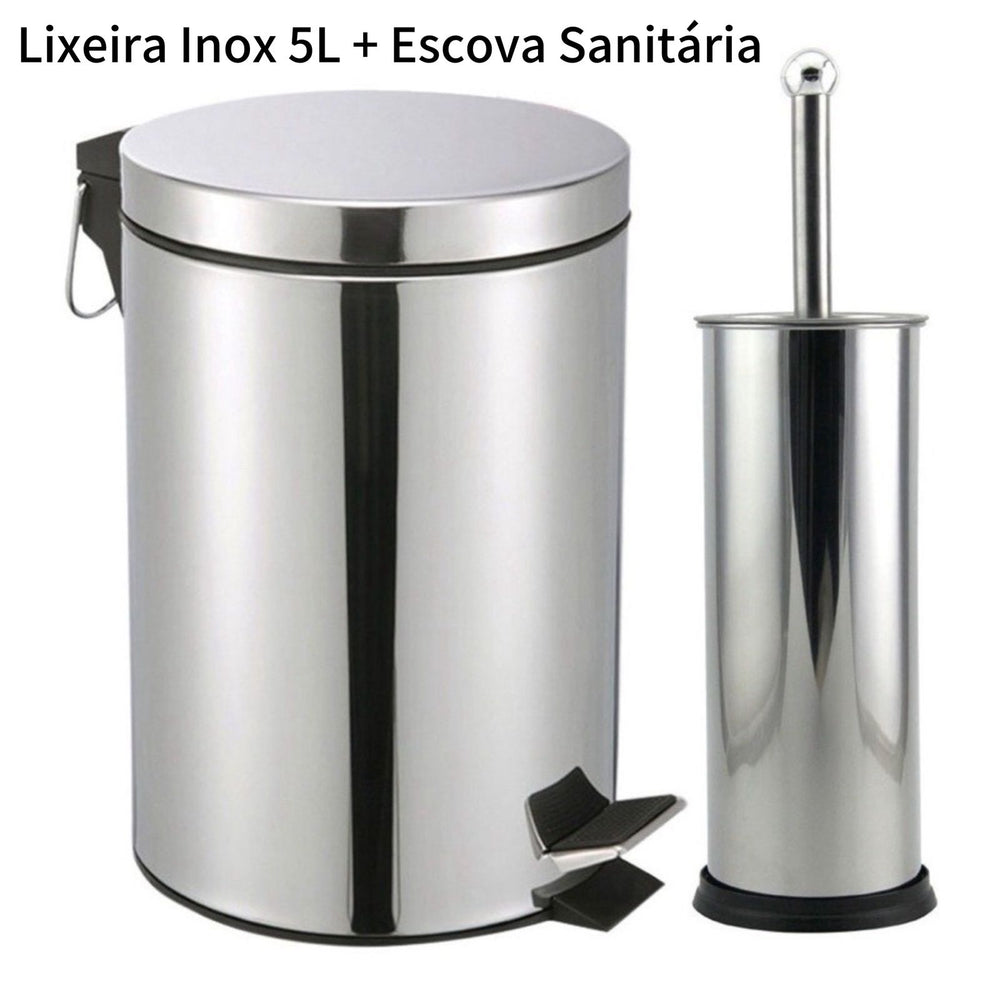 Contém: 1 lixeira inox + 1 escova sanitária inox