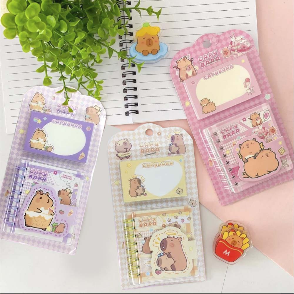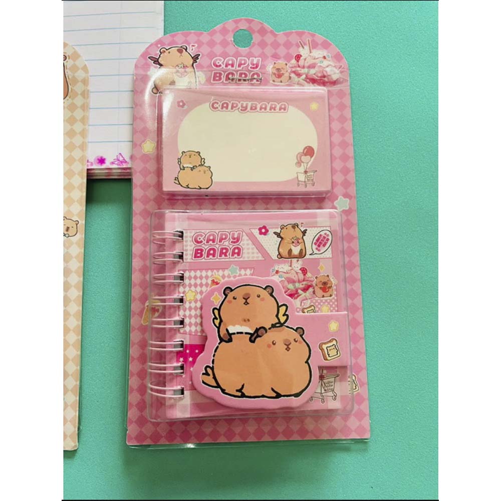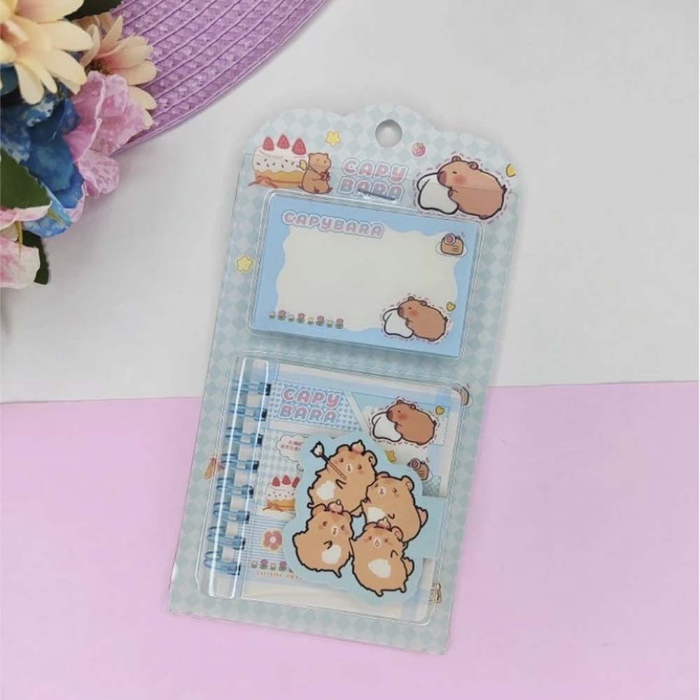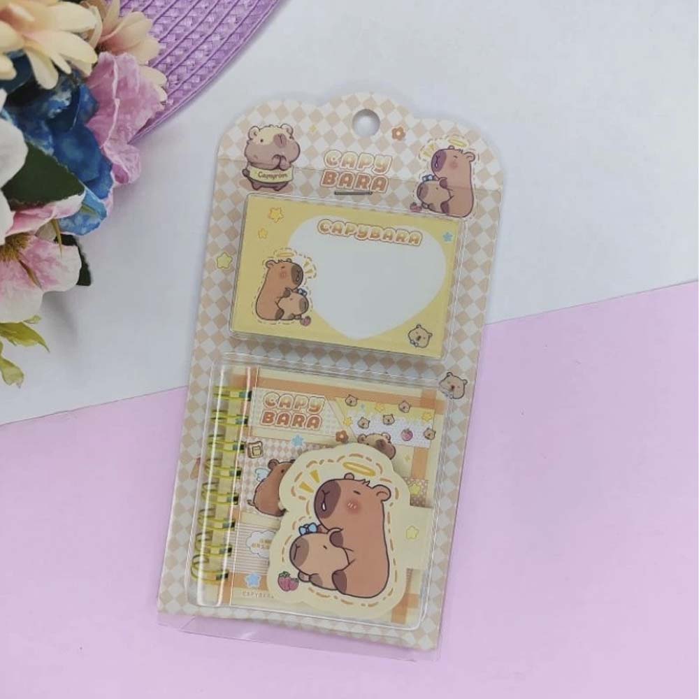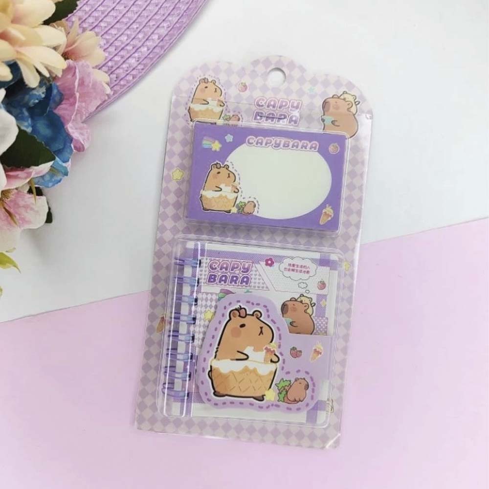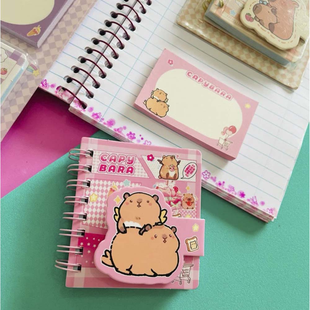 Kit Mini Caderno E Bloquinho De Anotações Adesivo Capybara fofo e colorido, perfeito para quem ama as fofíssimas capivaras, que são o tema do momento! Com um design encantador, disponível em 4 estampas diferentes, é ideal para anotações, organização ou momentos criativos. Oferece espaço ideal para escrever, deixar recados, lembretes, mantendo o charme e praticidade de um caderno leve e fácil de guardar na bolsa.