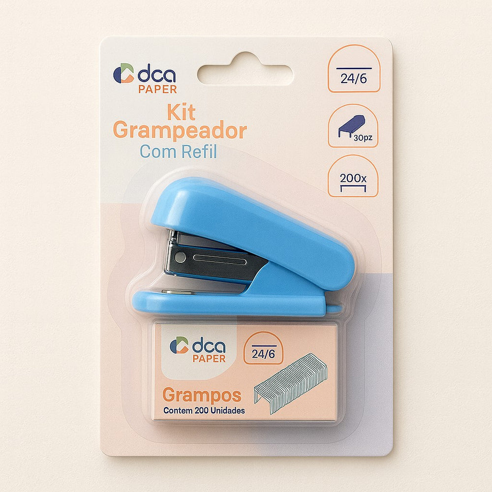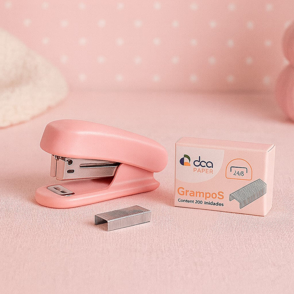 Organize seus documentos com praticidade e estilo com este mini grampeador. Compacto e resistente, é ideal para uso escolar, doméstico ou no escritório. Cada kit acompanha um mini grampeador no tamanho portátil e um refil com 200 grampos padrão 24/6, garantindo praticidade e reposição imediata. Disponível nas cores rosa ou azul, combina funcionalidade com um design moderno e delicado. Ideal para quem busca eficiência e um toque de cor no dia a dia!