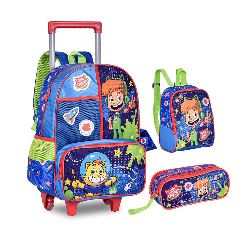 Mochila Roda Confeccionada em poliéster com frente em PVC com efeito brilhoso super resistente. Acompanha puxadores personalizados, logo tipo de borracha e patches de tecido. Bolso principal com amplo espaço, bolsos frontais e bolsos na laterais da mochila (um telado e o outro com fechamento em velcro) e ainda mais essa mochila de rodinha conta com alças de costa reguláveis para facilitar ainda mais.