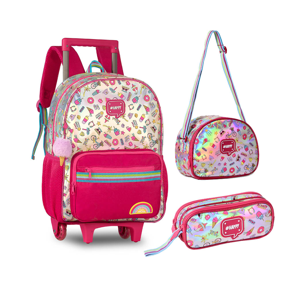 Kit Mochila Roda + Lancheira + Estojo Duplo