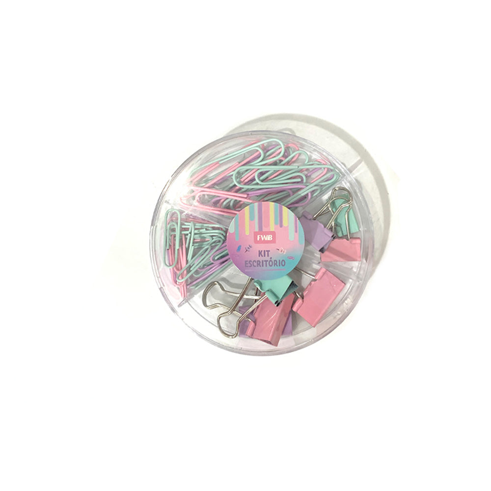 kit Organizador de escritório completo, perfeito para manter suas coisas organizadas e no lugar certo. Composto por clipes, binders, alfinetes e elásticos, este conjunto possui tudo o que você precisa para manter sua mesa organizada e seus documentos seguros.