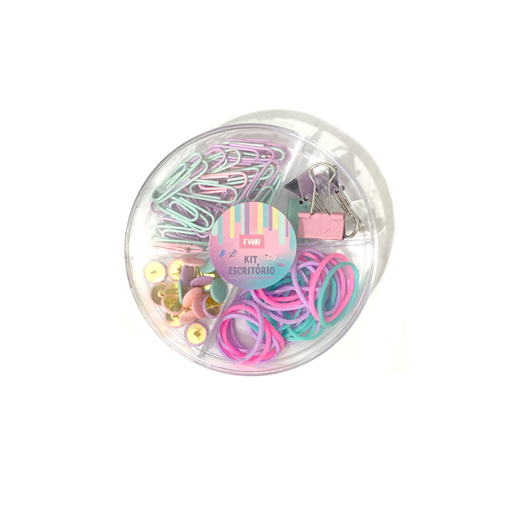 Kit 1: Possui clips, tachinhas, elásticos e binders