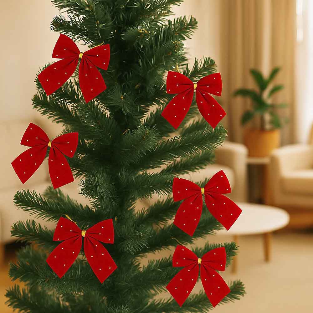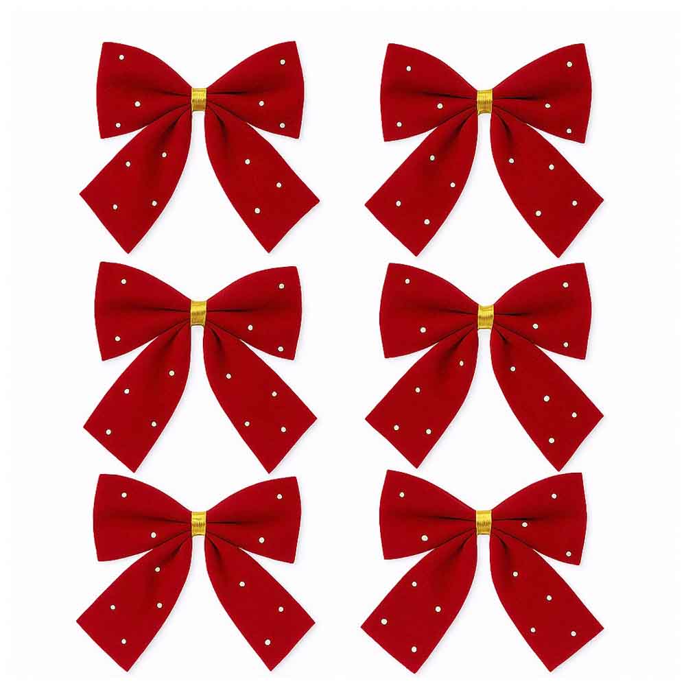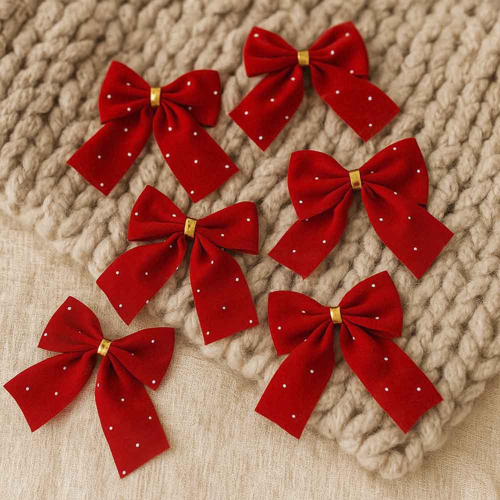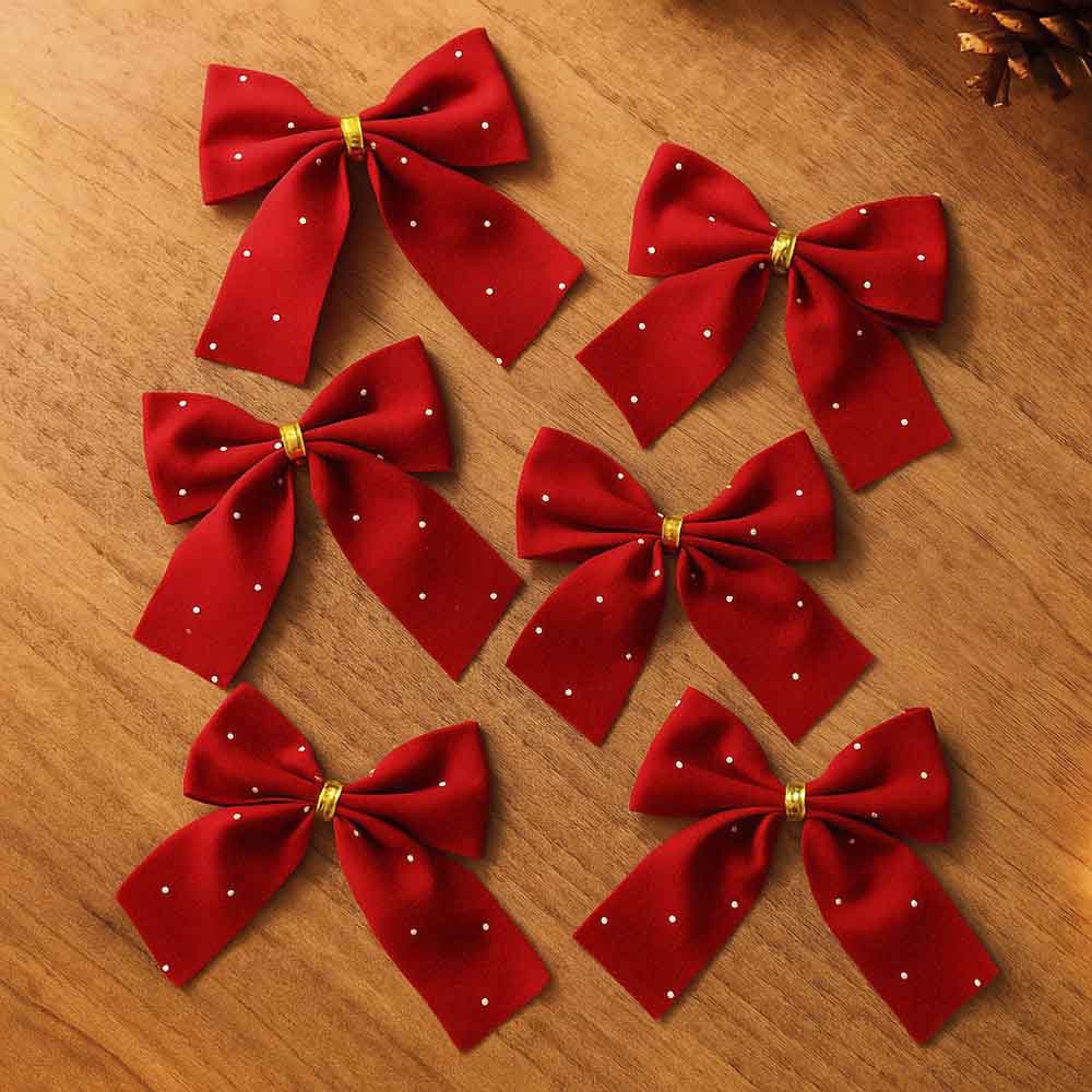 Celebre a magia do Natal com este lindo conjunto de laços natalinos vermelhos, perfeitos para levar cor, brilho e aquele toque tradicional que não pode faltar na sua decoração de fim de ano. Com um vermelho vibrante e pequenos pontos de brilho que remetem a estrelas cintilando na noite de Natal, esses laços são ideais para deixar sua árvore de Natal, guirlandas, arranjos de mesa ou até embalagens de presente ainda mais especiais. O detalhe dourado no centro traz sofisticação e reforça o clima festivo que só o Natal tem. Produzidos em tecido com textura aveludada, cada laço mede aproximadamente