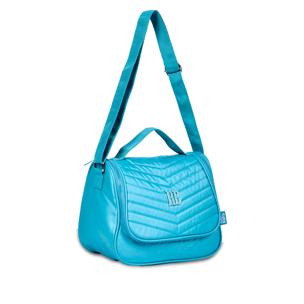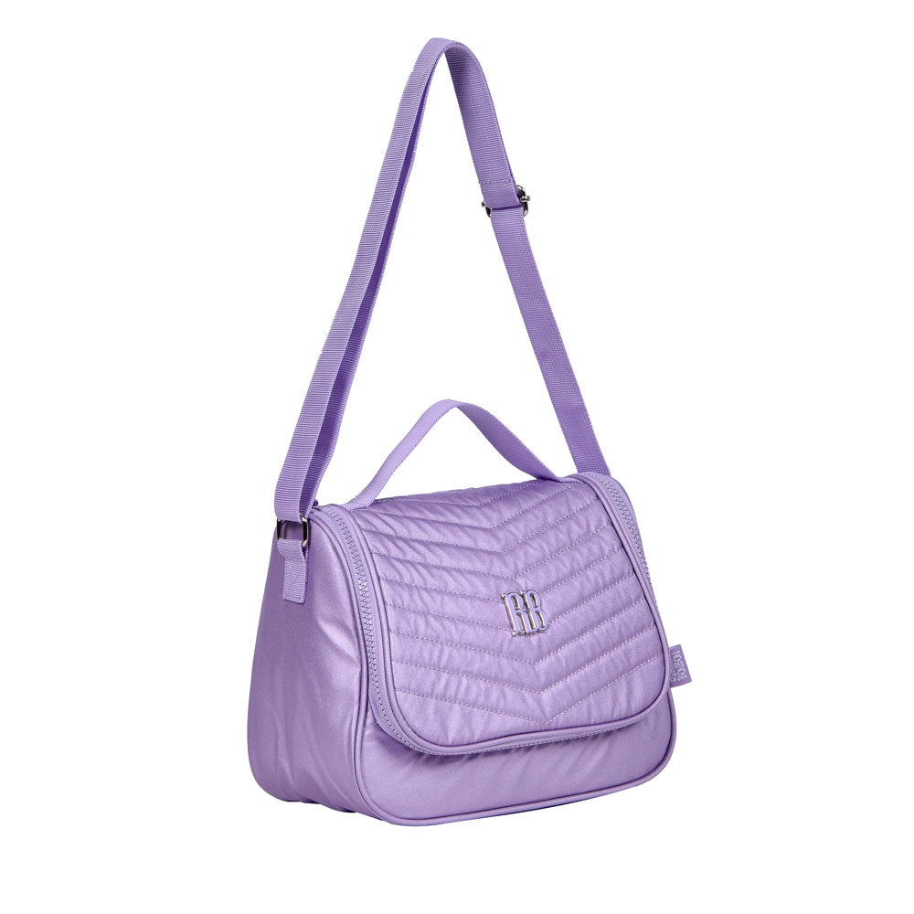 Lancheira confeccionada em material soft com matelassê, acompanha pingente personalizado, alça de mão e alça tiracolo fixa à peça.