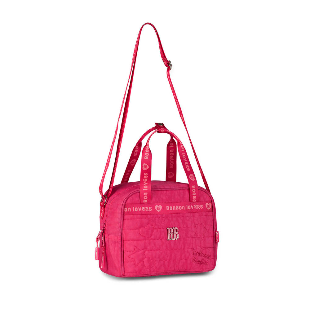 A Lancheira Térmica Rebecca Bonbon Sweet Dreams é perfeita para quem busca praticidade sem abrir mão do estilo. Produzida em material resistente e leve, possui design acolchoado com detalhes bordados em formato de corações e estrelas, além do logo RB aplicado na parte frontal.