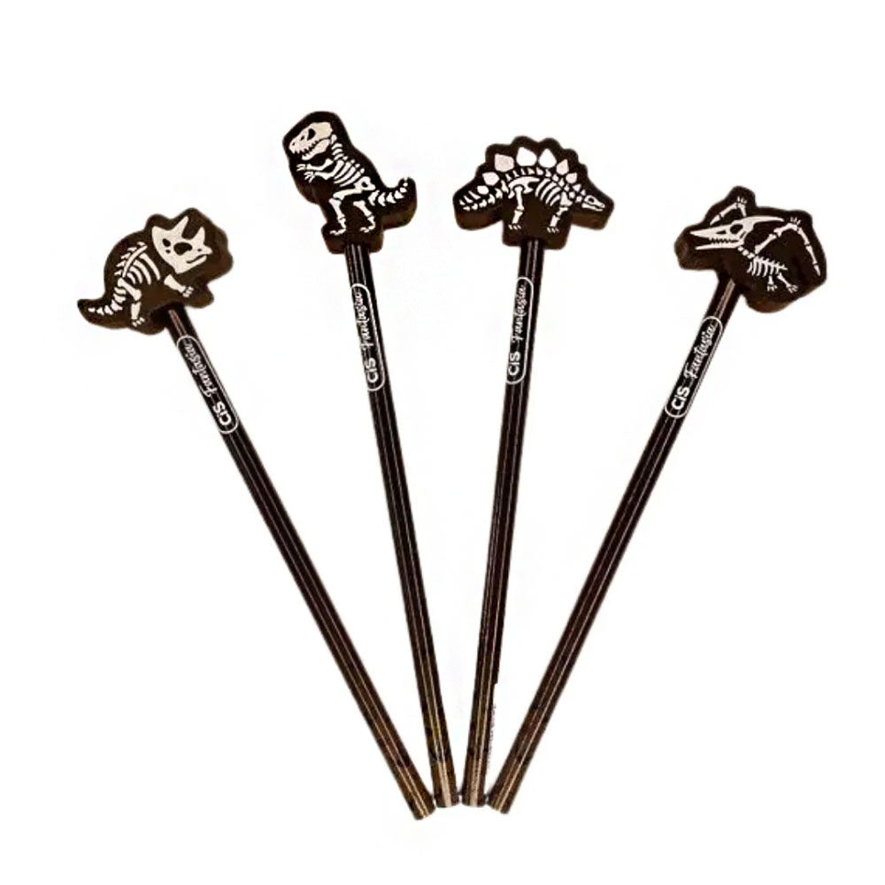 Lápis com borracha que brilha no escuro, com estampa de dinossauro. É ideal para os baixinhos se divertir e estudar ao mesmo tempo. Ele é fácil de apontar e possui grafite HB.