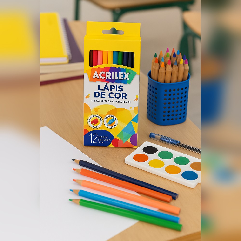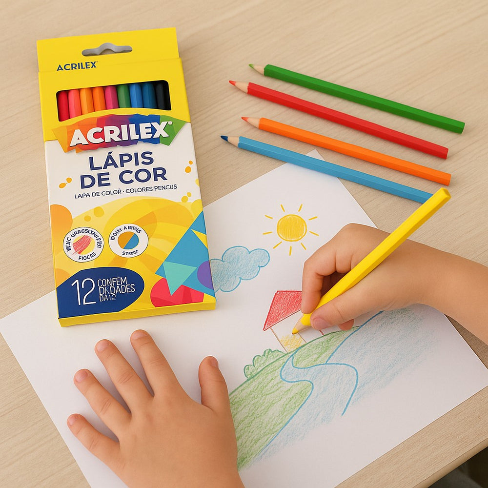 O Lápis de Cor Acrilex é ideal para escrever, desenhar e colorir com traços macios e uniformes. Com 12 cores variadas como salmão, amarelo, laranja, vermelho, rosa, violeta, azul claro, azul, verde folha, verde, marrom e preto. Ele oferece pigmentos intensos que proporcionam resultados vibrantes e ótima cobertura no papel. Sua mina super resistente de 3mm garante maior durabilidade, enquanto o formato hexagonal facilita a pegada e evita que o lápis role na mesa. Além da praticidade e qualidade, o produto é atóxico e seguro para crianças a partir de 3 anos, sendo perfeito para uso escolar, no escritório, em hobbies ou em atividades artísticas. O Lápis de Cor Acrilex une versatilidade, durabilidade e cores marcantes em cada criação.