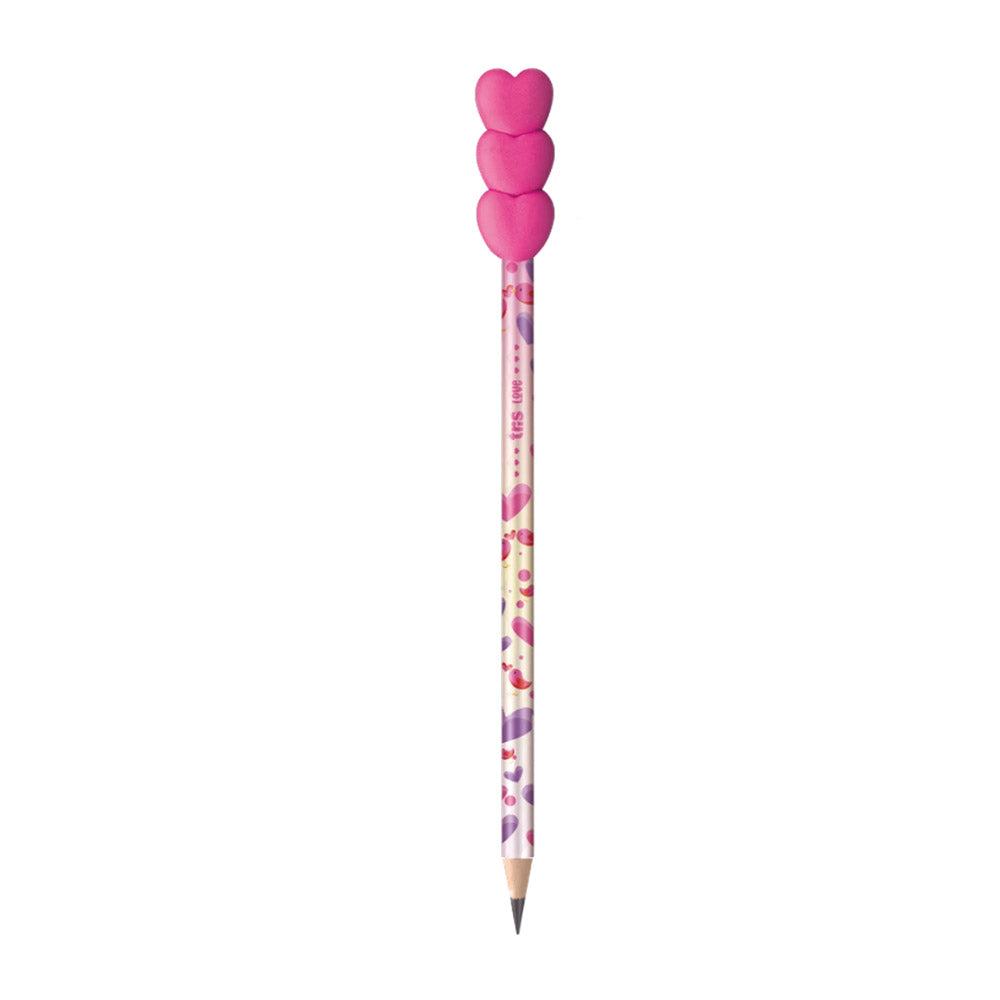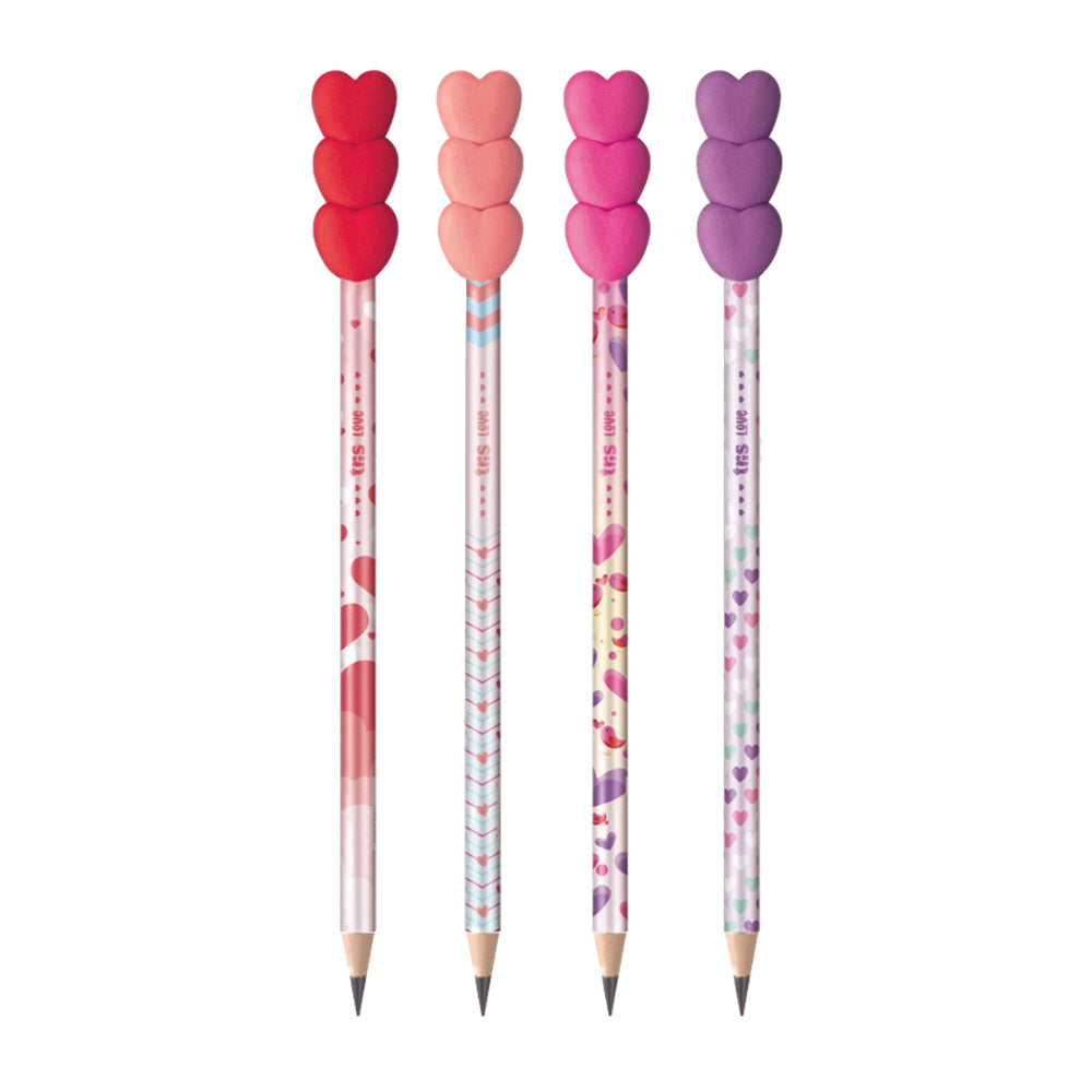 Fácil de apontar, resistente e com um traço macio, o Lápis Preto Redondo com Borracha ponteira de coração. Estilo e fofura para você levar todos os dias para escola.