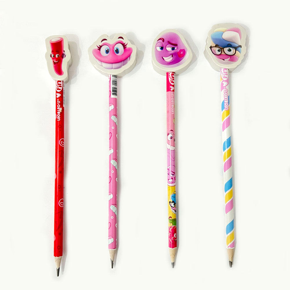 Fácil de apontar, resistente e com um traço macio, o lápis preto com borracha Fini, além de estimular a imaginação, torna o espaço infantil ainda mais lúdico e divertido, trazendo estilo e fofura para você levar todos os dias para a escola. Possui estampas inspiradas nos personagens Fini: Tubes, Dentadura, Marsh e Beijo, possui formato redondo, ponta resistente e borracha decorada.