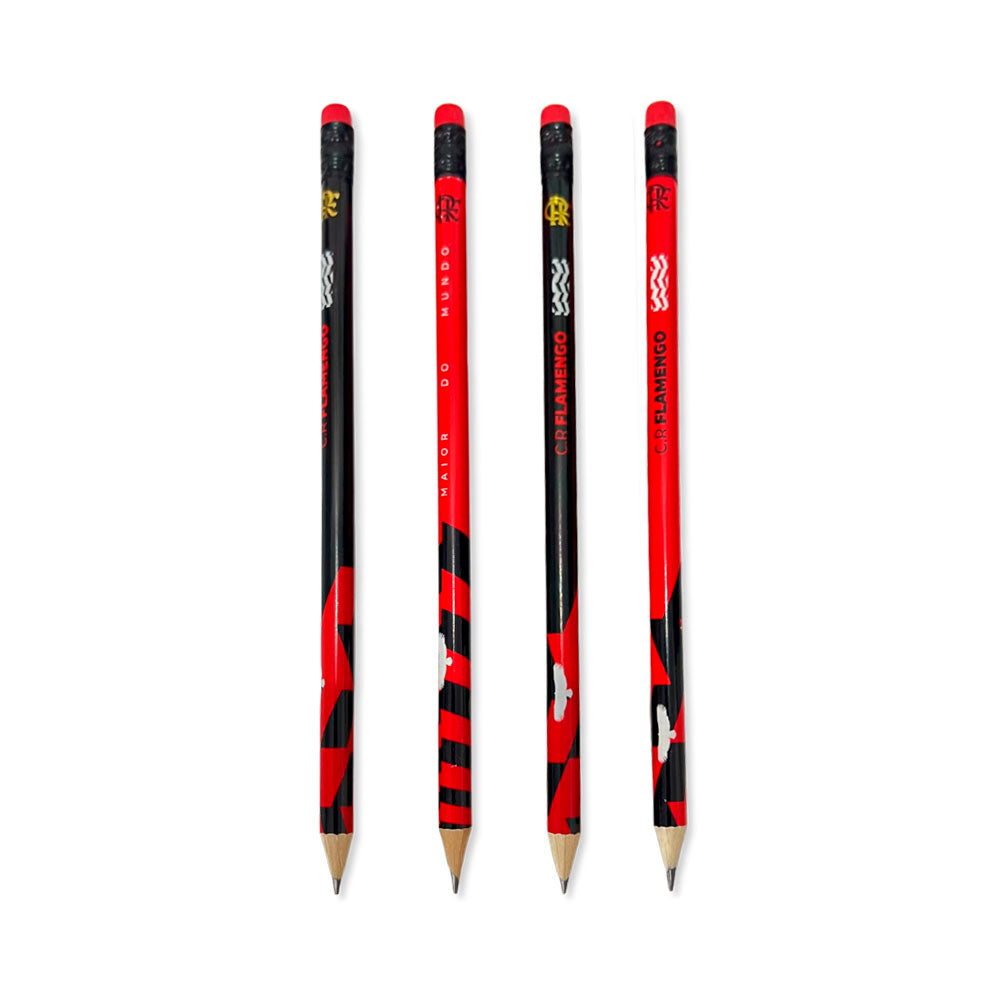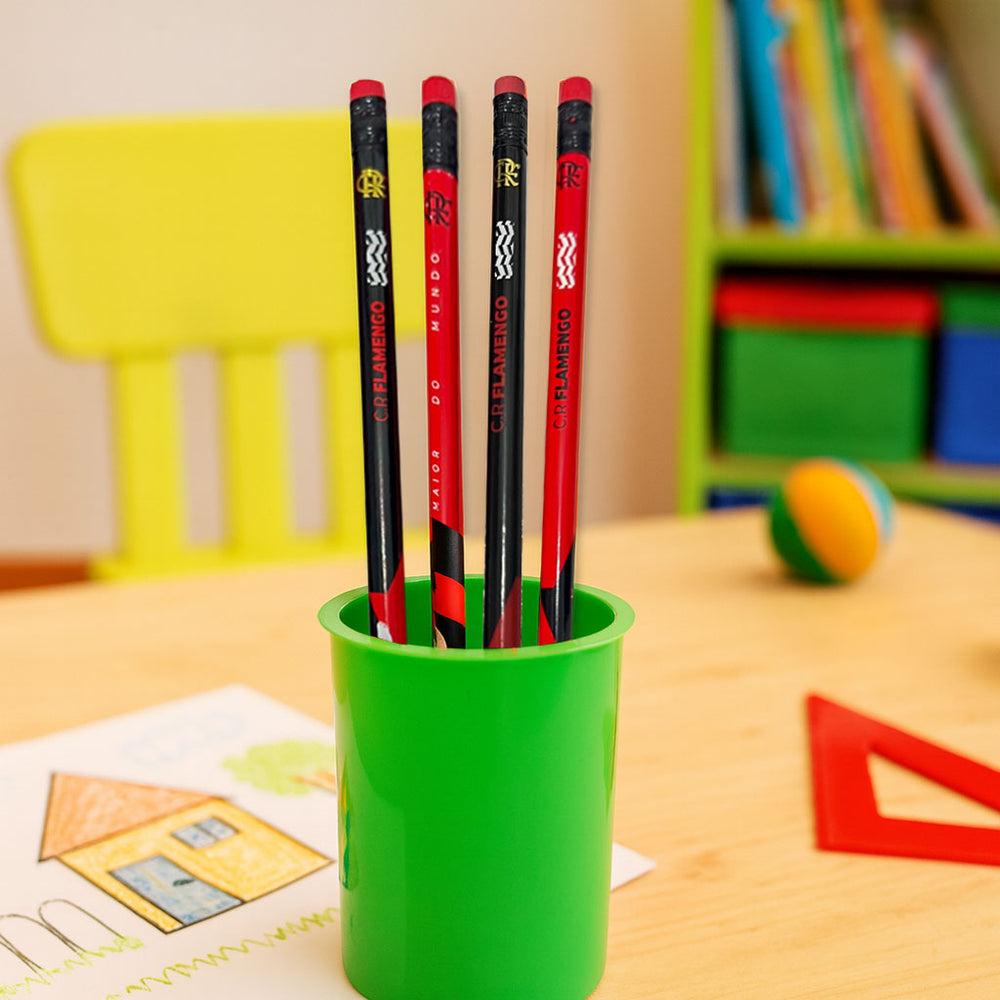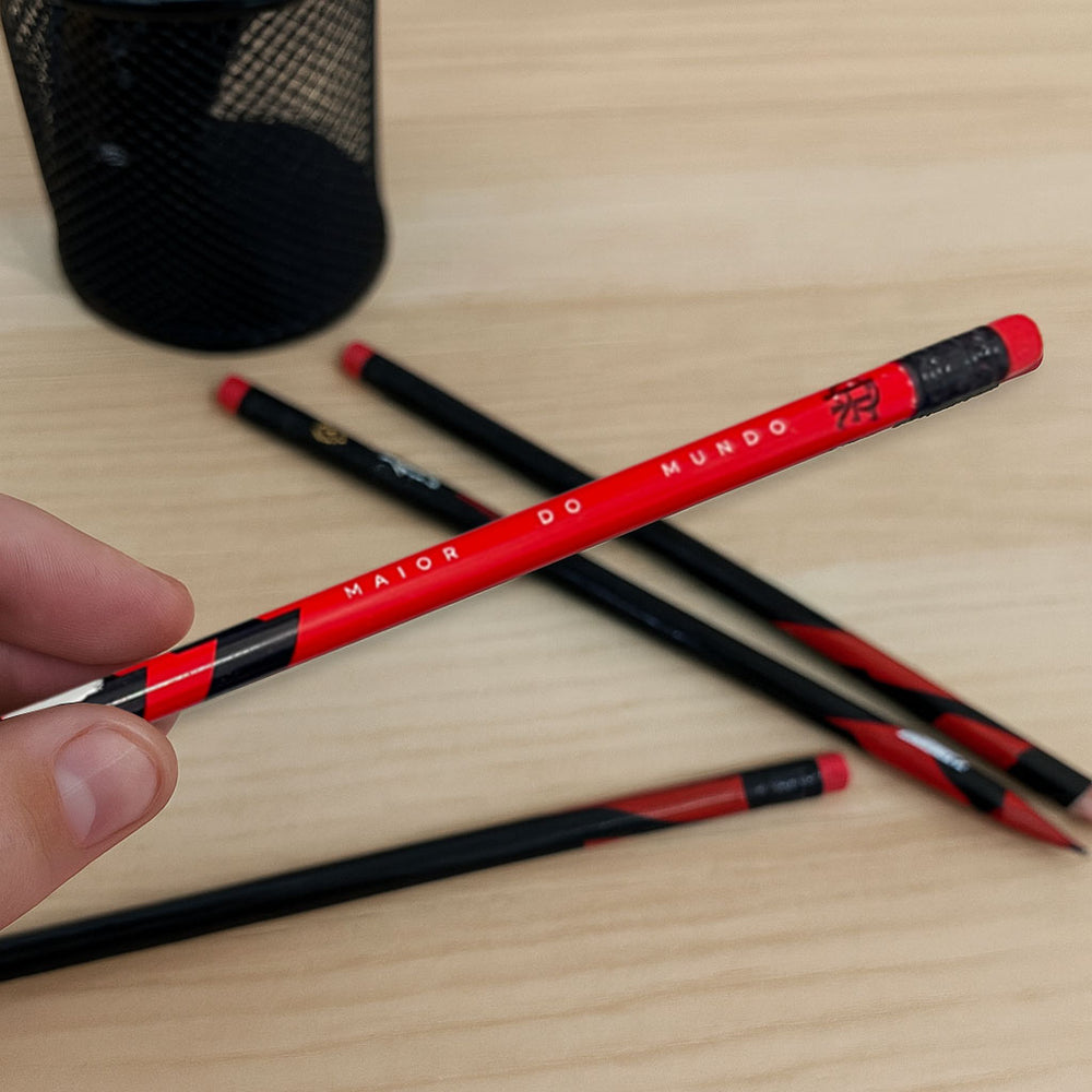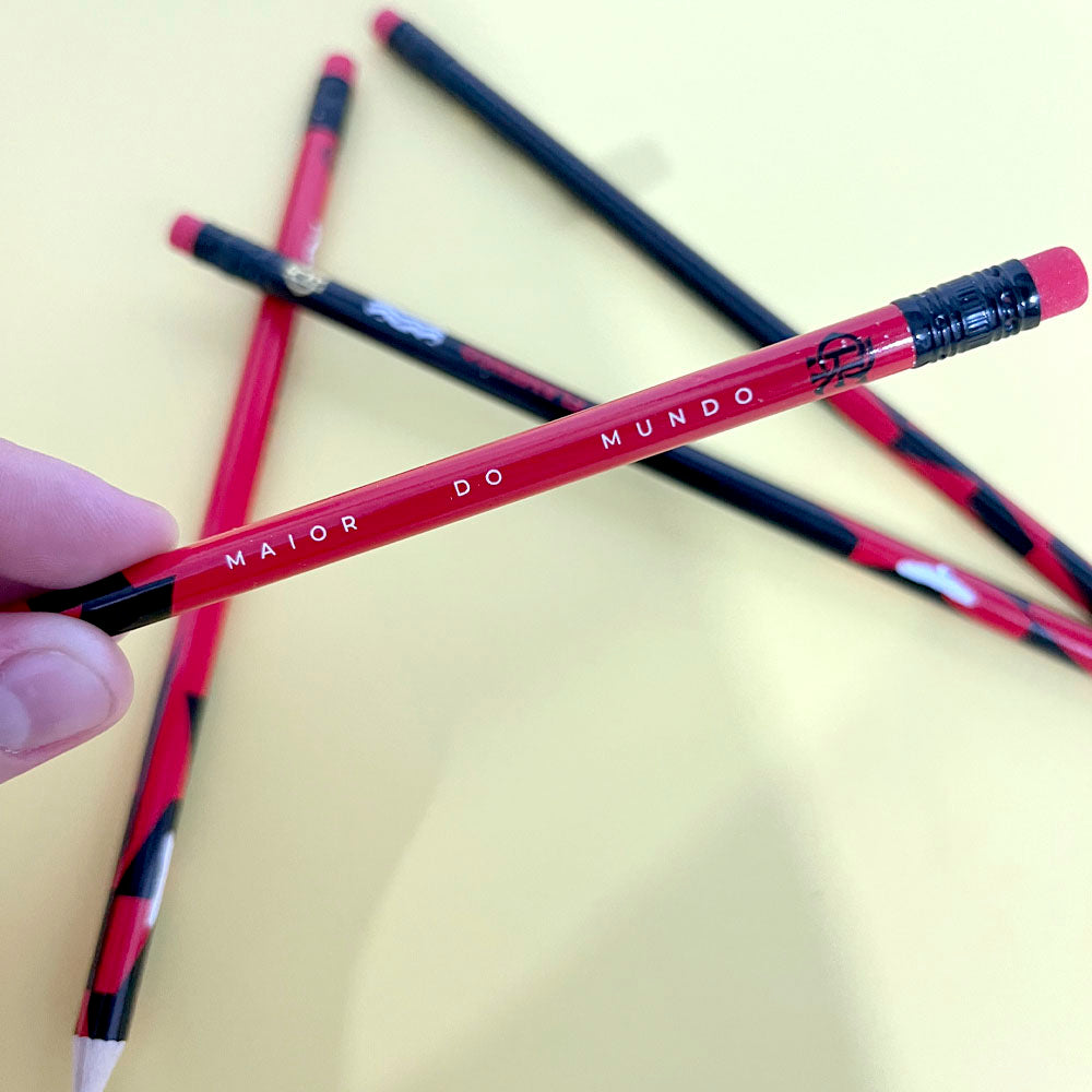 Com design exclusivo, os lápis trazem as cores marcantes vermelho e preto, o escudo do clube e frases que reforçam o orgulho rubro-negro, além de estampas modernas que destacam ainda mais o visual.