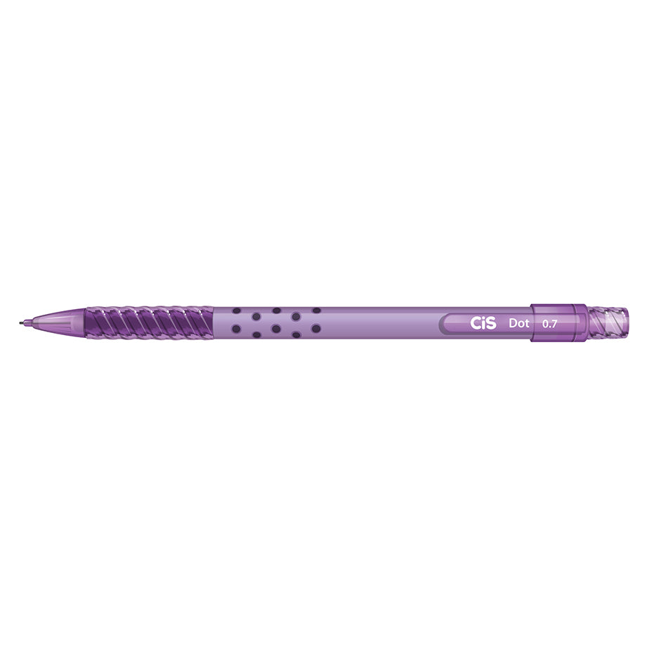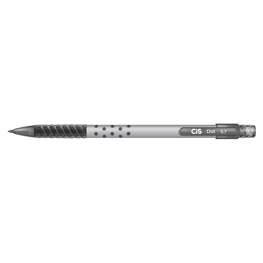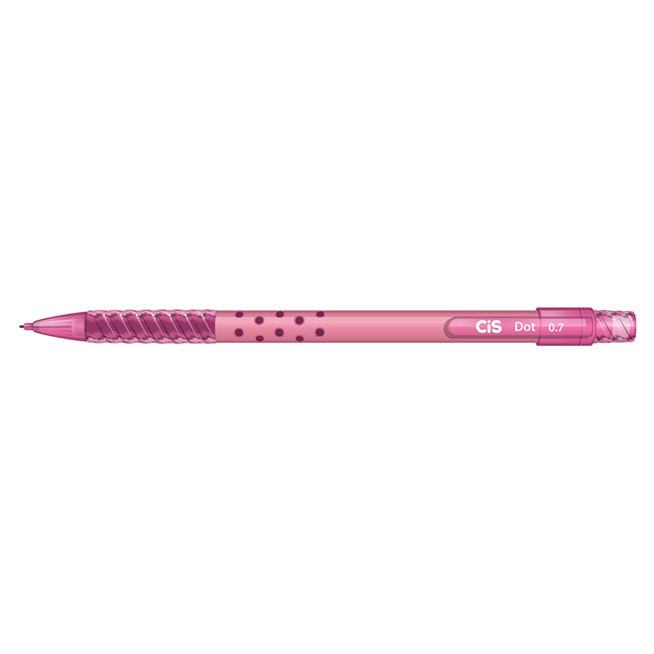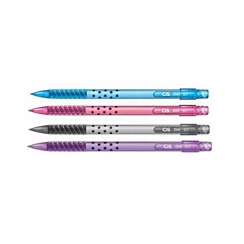 A lapiseira Dot com a ponta 0.7mm, a Cis sempre trazendo novidade para você que gosta de praticidade tendo o Grip ergonômico e borracha no topo.