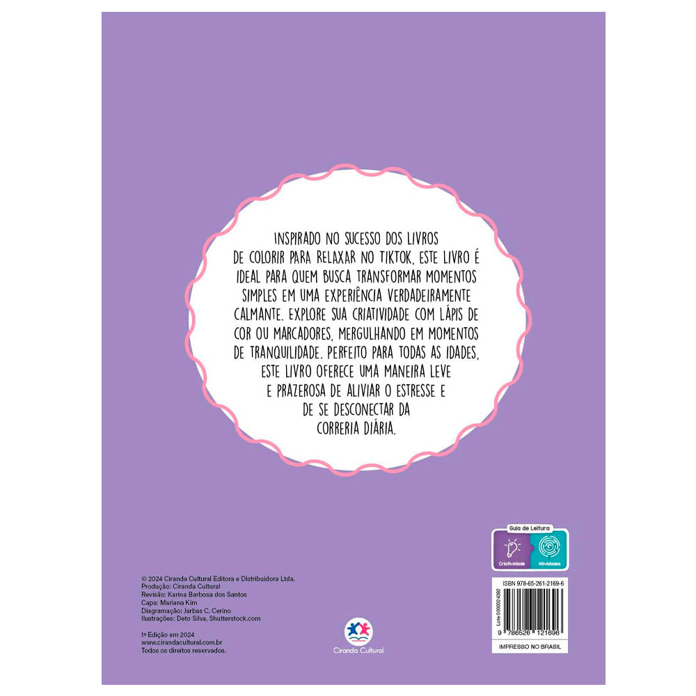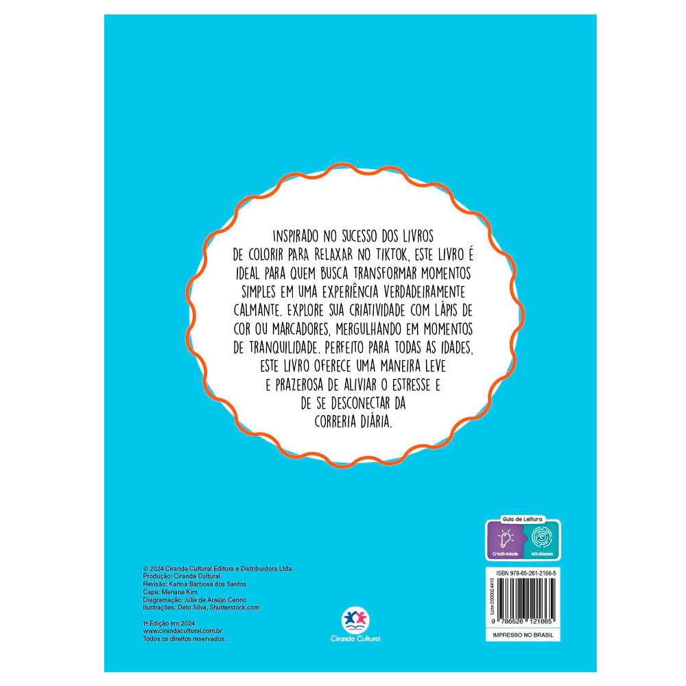 Inspirado no sucesso dos livros de colorir para relaxar no tiktok. Este livro é ideal para quem busca transformar momentos simples em uma experiência verdadeiramente calmante. Explore sua criatividade com lápis de cor ou marcadores, mergulhando em momentos de tranquilidade. Perfeito para todas as idades, este livro oferece uma maneira leve e prazerosa de aliviar o estresse e de se desconectar da correria diária.