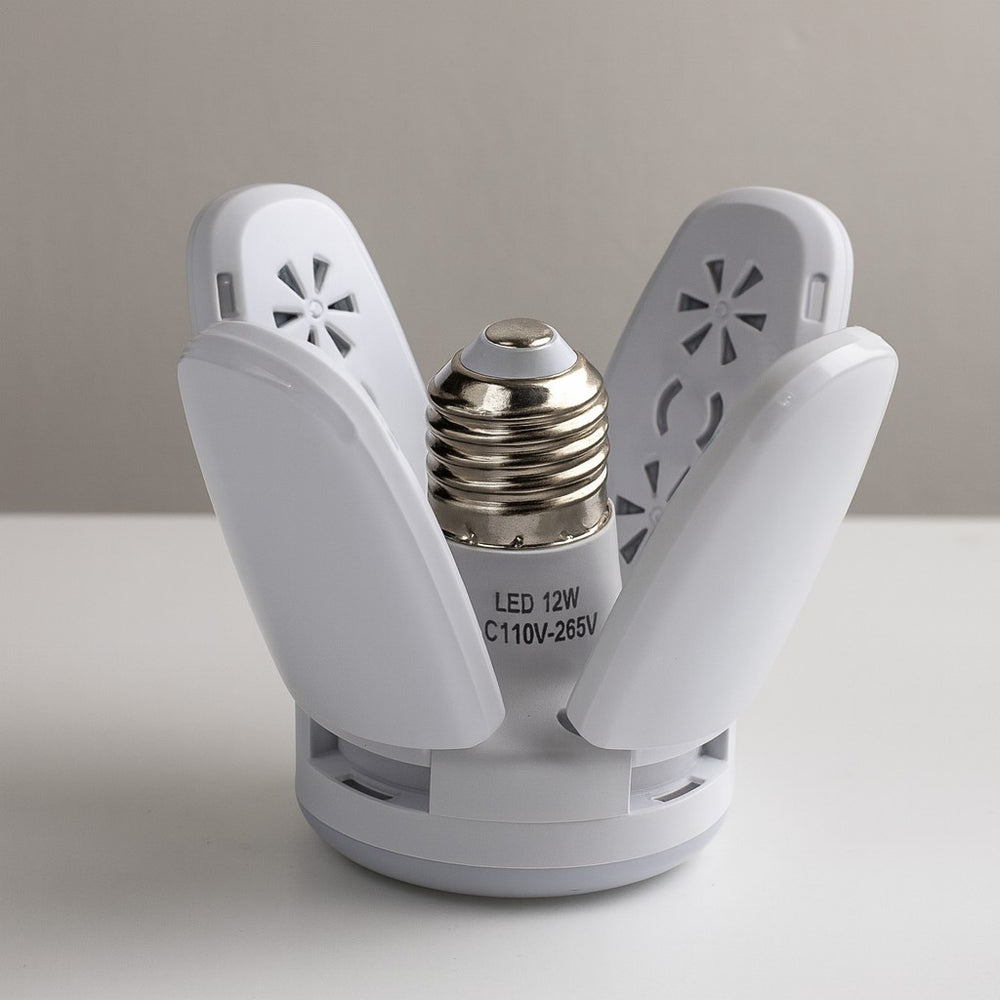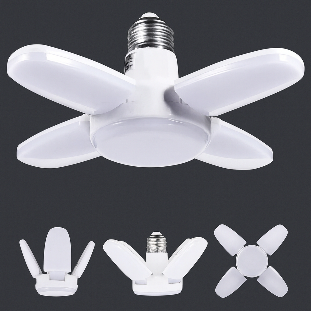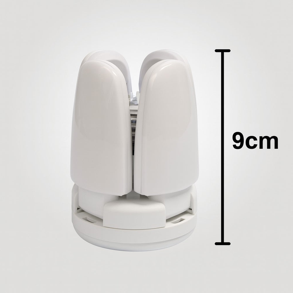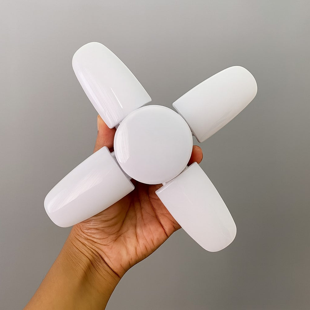 A Luminária de Teto Dobrável Lâmpada de Pétalas Led 12w possui design inovador com 4 abas dobráveis, que podem ser ajustadas de acordo com a necessidade, proporcionando iluminação ampla e direcionada.