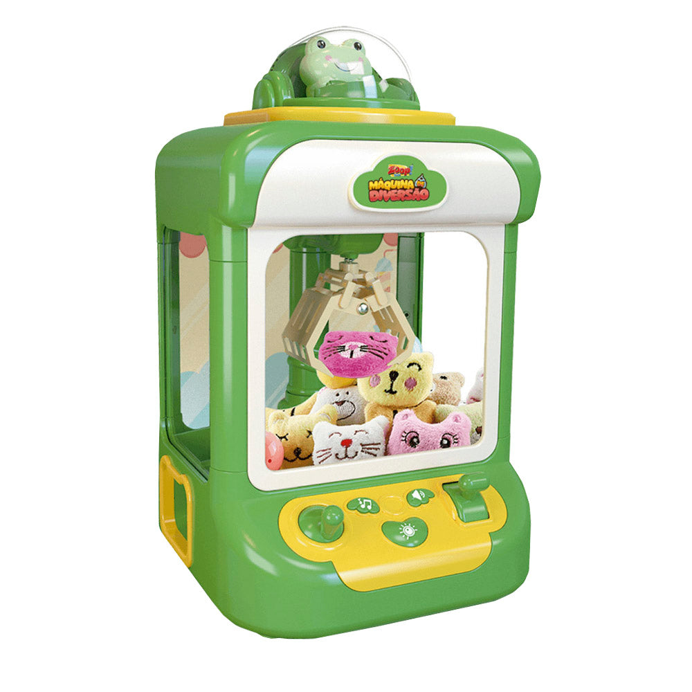 Para jogar é muito fácil. Ela funciona conectada na tomada (cabo incluso) ou com 4 pilhas AA (pilhas não inclusas); Abra a tampa girando o sapinho para a direita e levantando; Abasteça com a quantidade desejada de bichinhos, quanto mais cheio maior é o grau de dificuldade. O botão maior no formato de coração dá início a contagem de 60s para você pega o brinde; Girando a alavanca da Esquerda você controla a posição da garra; A alavanca da direita serve para baixar e levantar a garra; O botão da esquerda serve para trocar as 4 opções de músicas; O botão da direita serve para controlar o volume da música.