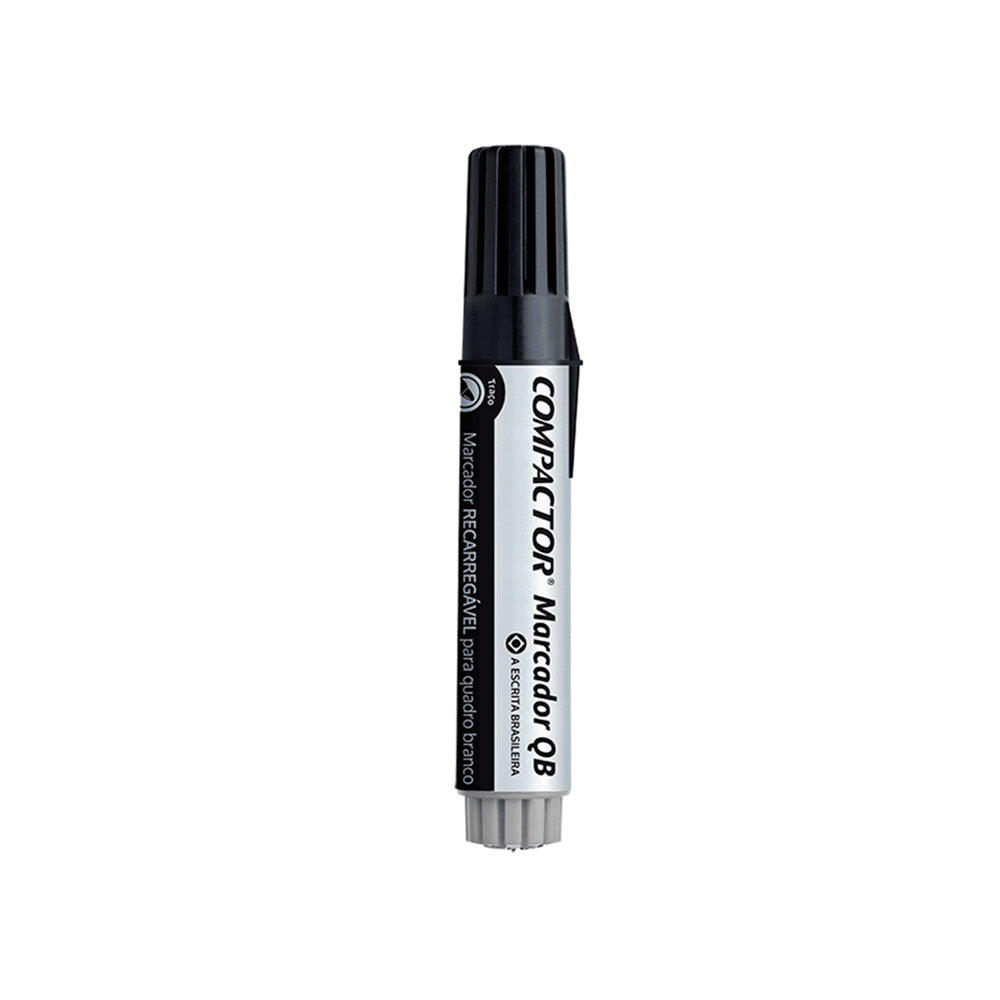 Marcador de Quadro Branco Preto,traços consistente que facilitam a visualização em sala de aula, de reunião ou auditórios. A tinta de secagem rápida evita borrões nas mãos, mas sai com facilidade do quadro branco. O Marcador de Quadro Branco QB Compactor possui ponta cônica macia porém reforçada, permitindo traços de 2 a 5 mm, dependendo do ângulo da escrita. Graças à exclusiva tecnologia Cap Off sua ponta não resseca mesmo se destampada por algumas horas. O Marcador de Quadro Branco QB Compactor pode ser reabastecido de forma simples e sem fazer sujeira. Basta encaixar a tampa no fundo do marcador e girar no sentido anti-horário, colocar 100 gotas de reabastecedor QB, encaixar o fundo e girar no sentido horário até vedar completamente. Pronto! Você tem um marcador novo em mãos. Sem descarte, o seu bolso e o meio ambiente agradecem!