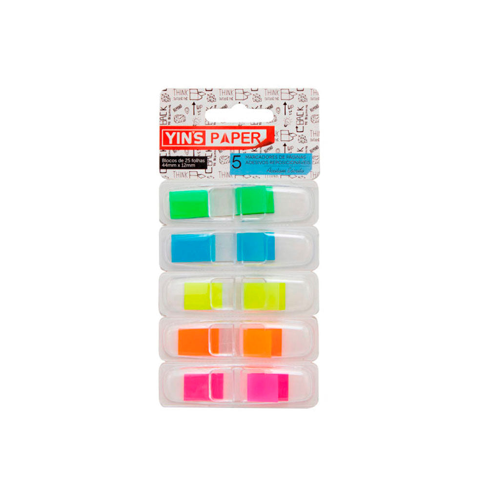 Modelo além de ser reposicionável, ele aceita escrita. Com 5 cores na embalagem, blocos com 25 folhas cada e tamanho 44mm x 12mm.