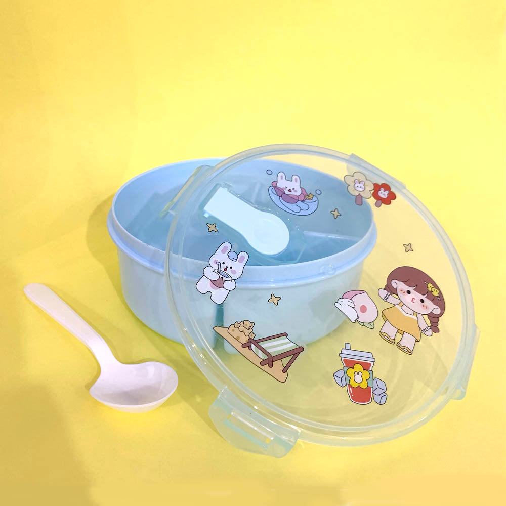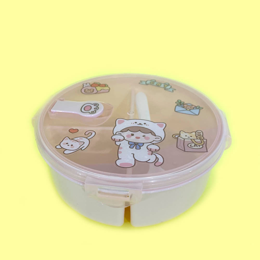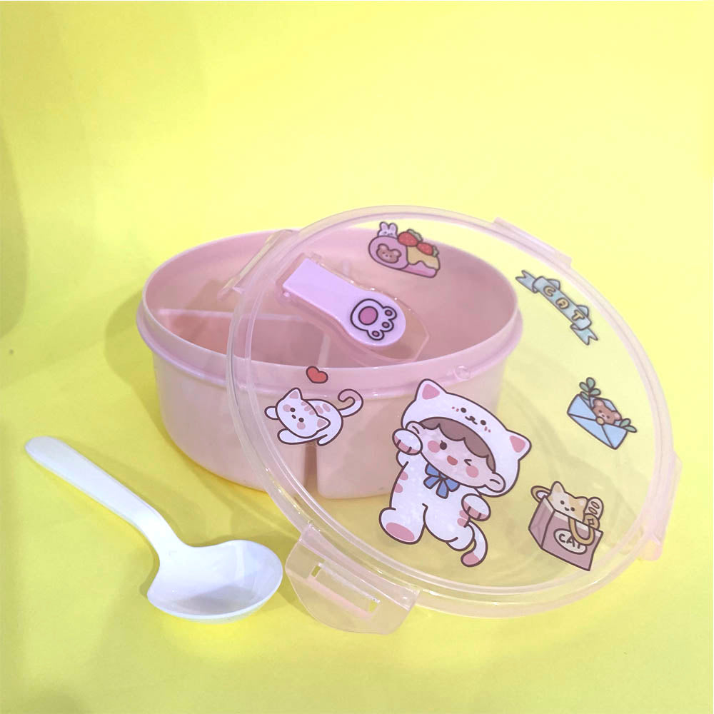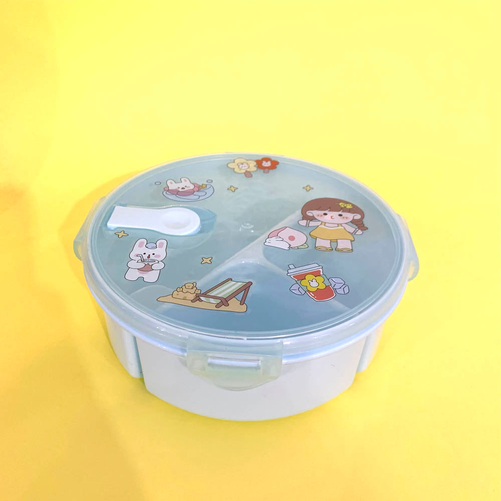 A marmita acompanha 1 colher e adesivos para você personalizar e deixar bem fofinha. Possui divisória interna, travas nas 4 laterais e válvula para saída de ar.