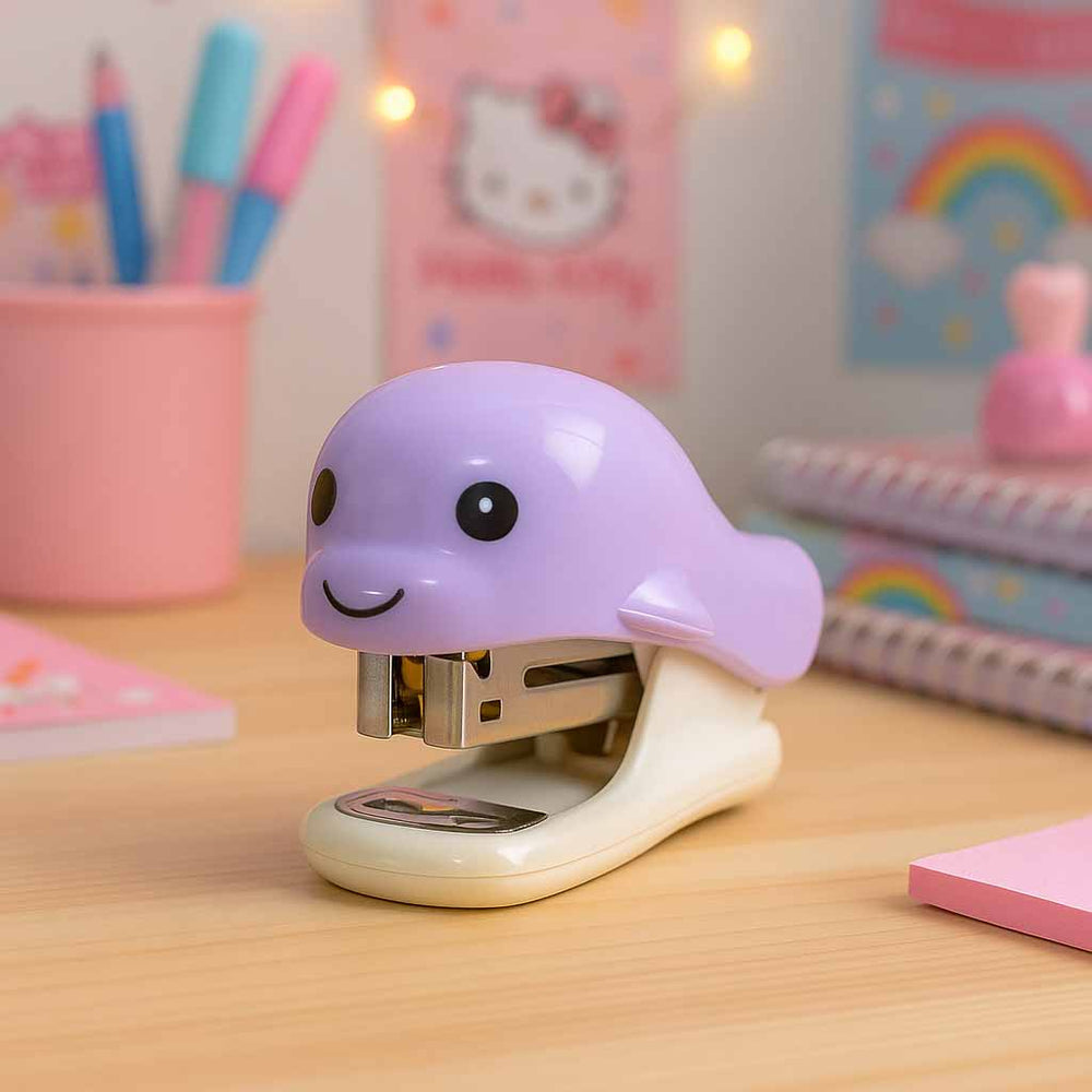 Transforme sua papelaria com um toque de criatividade usando este mini grampeador em formato de golfinho! Com um visual encantador, ele é perfeito para quem busca funcionalidade sem abrir mão do estilo. Seja na escola, no escritório ou em casa, ele torna o dia a dia mais leve e divertido. Compacto e fácil de carregar, está disponível em cores sortidas como: verde, lilás e rosa. Acompanha um estojo com grampos tamanho 26/6, pronto para o uso. Um item versátil e cheio de personalidade, ideal também como presente criativo.