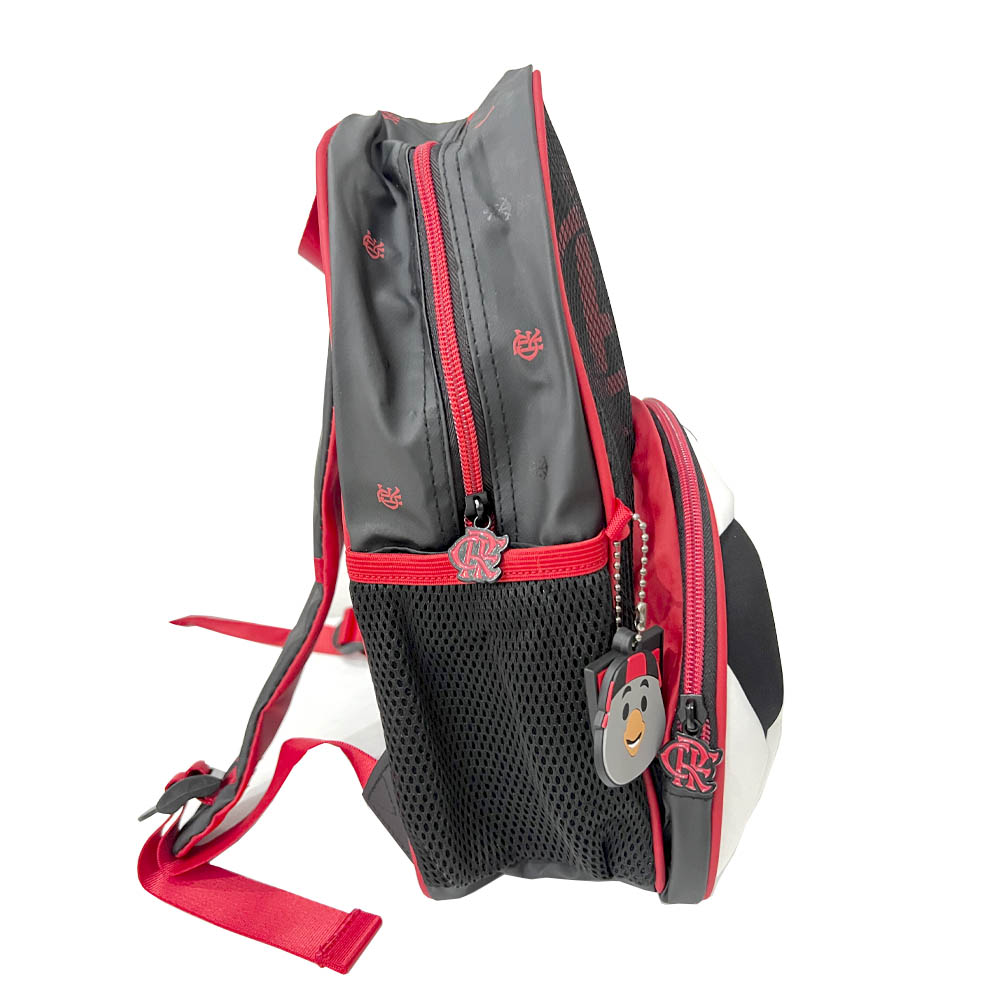 A mini mochila do flamengo é perfeita para os pequenos torcedores apaixonados pelo Mengão. Confeccionadas em lona resinada com detalhe da bola de EVA em estrutura conformada e silk sob telado. Moderna e funcional, vem com 2 lindos chaveiros do mengão emborrachados, 1 é o escudo e o outro é o mascote Binho.