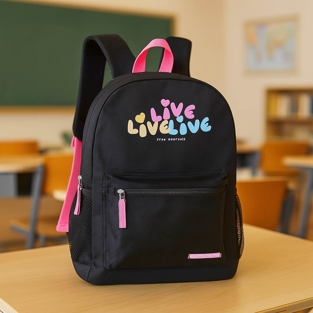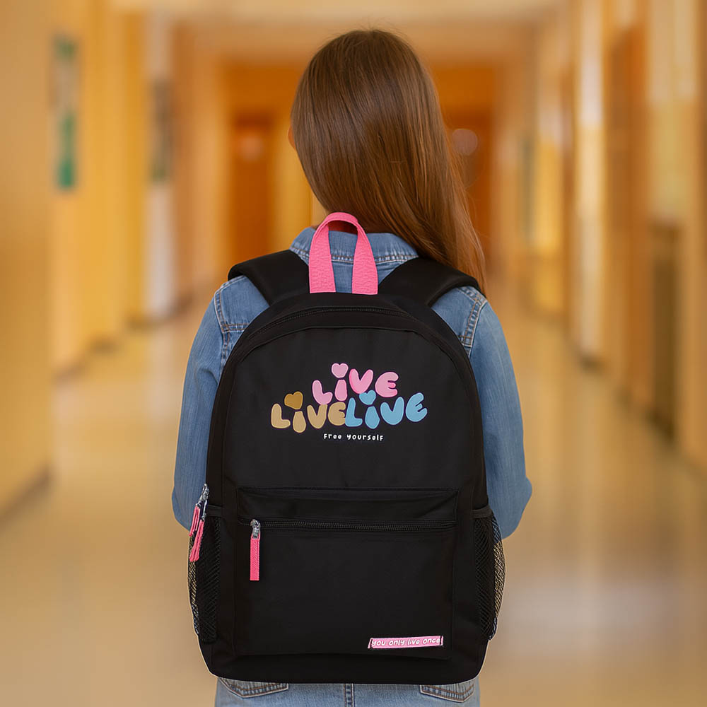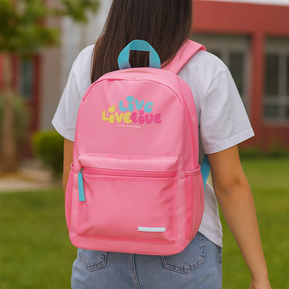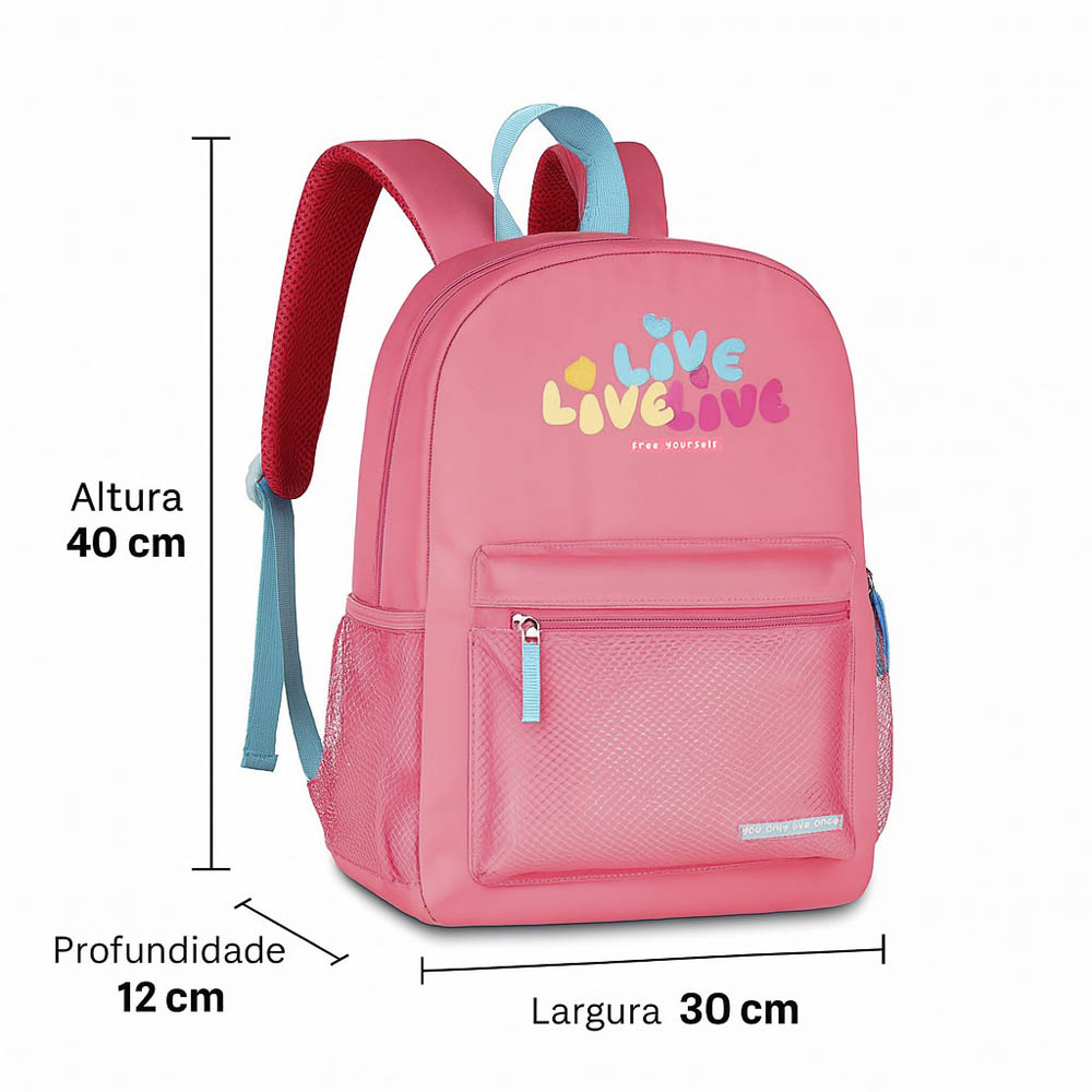 A Mochila Live Free Yourself é ideal para quem é moderno e busca por um look despojado e divertido. A mochila conta com design autêntico, ótimo espaço no compartimento principal, um bolso frontal para itens pessoais e dois bolsos laterais telados com elástico.
