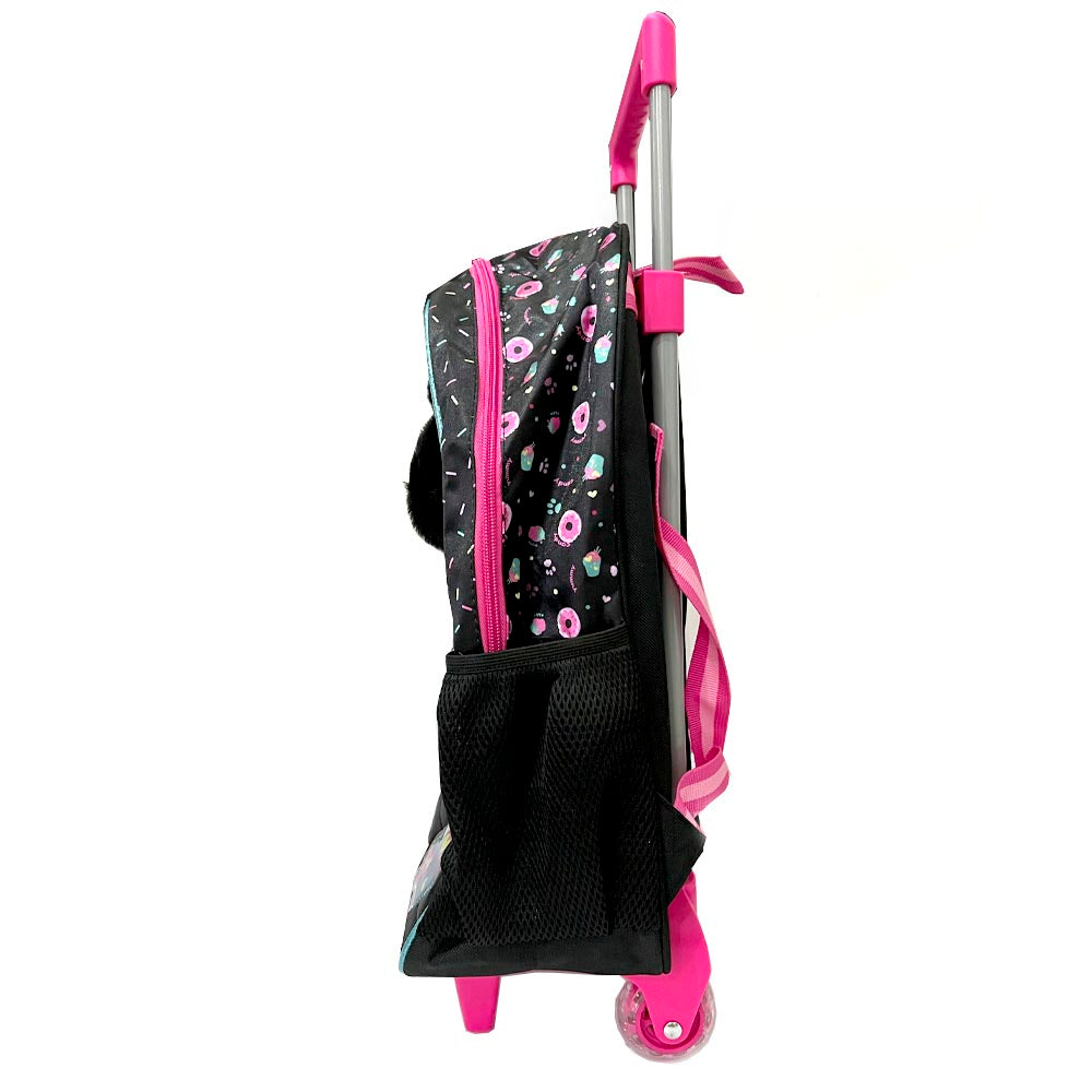 Super fofa, a Mochila Escolar De Rodinha Panda possui um design encantador com estampa de panda com orelhas fofinhas e chaveiro sorvetinho, tornando-a ainda mais especial. Ela possui um compartimento grande com zíper que garante que tudo fique bem organizado, perfeito para objetos maiores. Além disso, conta com um bolso frontal externo para objetos menores, dois bolsos laterais ideais para garrafas de água e outros objetos pequenos.Observações: