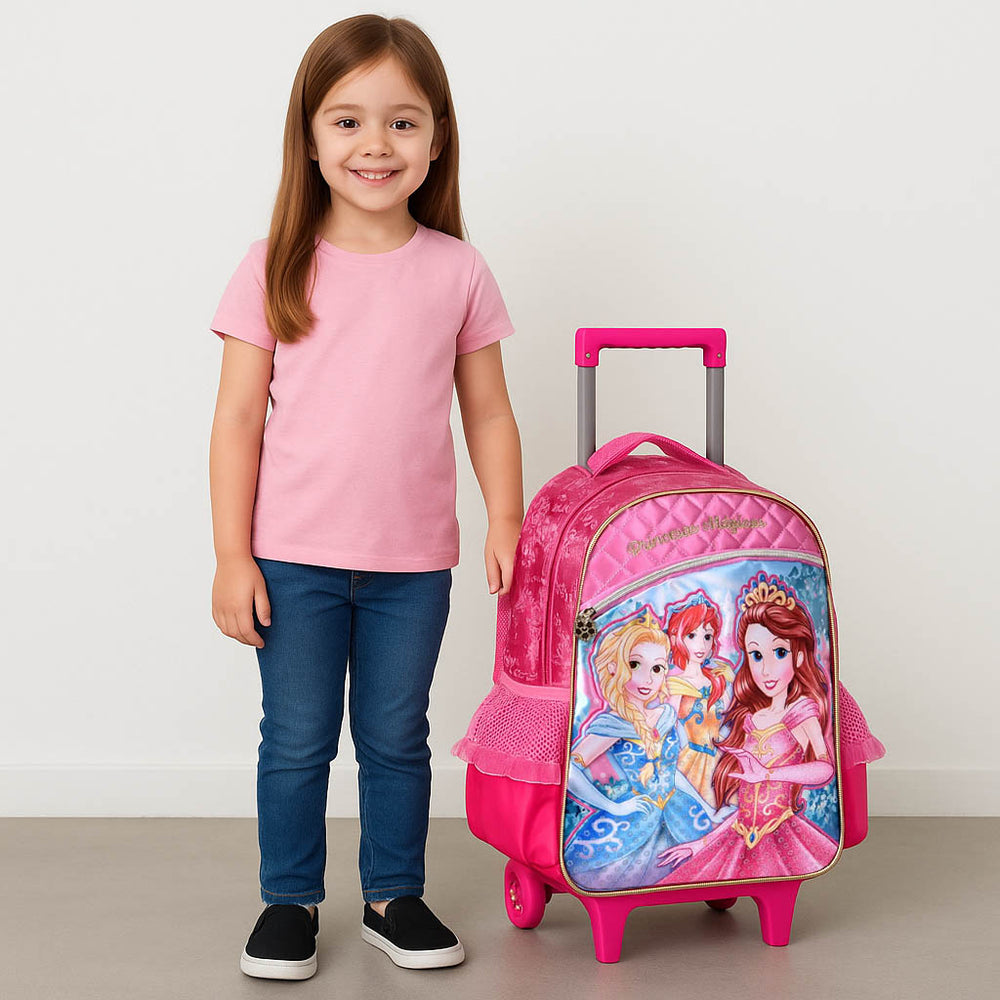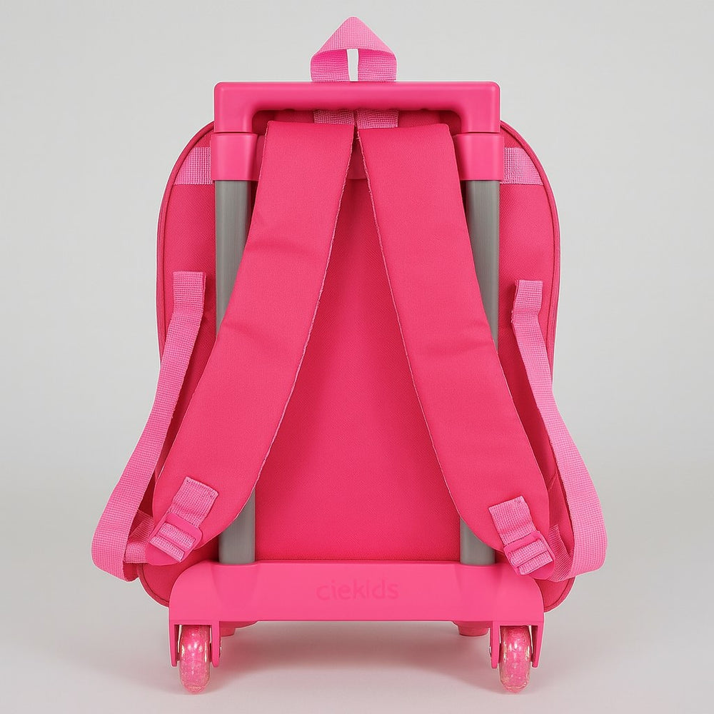 Cheia de encanto e praticidade, esta mochila de rodinhas é perfeita para acompanhar as pequenas no dia a dia escolar. Seu design colorido e delicado traz um toque especial, enquanto o compartimento principal garante espaço de sobra para livros, cadernos e materiais. Conta ainda com um bolso frontal, ideal para guardar itens menores e mantê-los sempre à mão. Com dois bolsos laterais telados, zíper personalizado e alças de costas ajustáveis, ela foi pensada para oferecer organização e conforto. O carrinho em metal reforçado facilita o transporte, tornando a rotina muito mais leve. Funcional, resistente e cheia de charme, é a companheira ideal para deixar a volta às aulas ainda mais divertida e inesquecível!