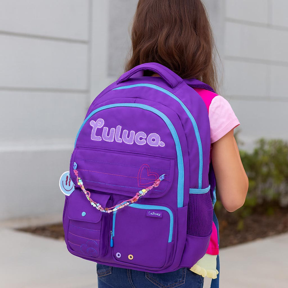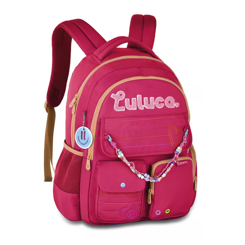 A Mochila Escolar Luluca 3B Miçanga Original Clio é uma celebração do universo encantador e cativante que a Luluca traz para seu público. Com um design vibrante e cheio de personalidade, ela reflete a energia positiva e a criatividade que são marcas registradas da Youtuber. A mochila é composta por 1 bolso principal ótimo para levar os cadernos e livros, além de ter divisões para notebook e tablet, 1 bolso médio e 3 bolsos frontais que facilita bastente para guardar seus acessórios ou objetos menores, também tem 2 bolsos laterais que servem para levar a garrafinha ou guarda chuva e pra completar 2 lindos chaveiros um de miçangas e outro de smile.