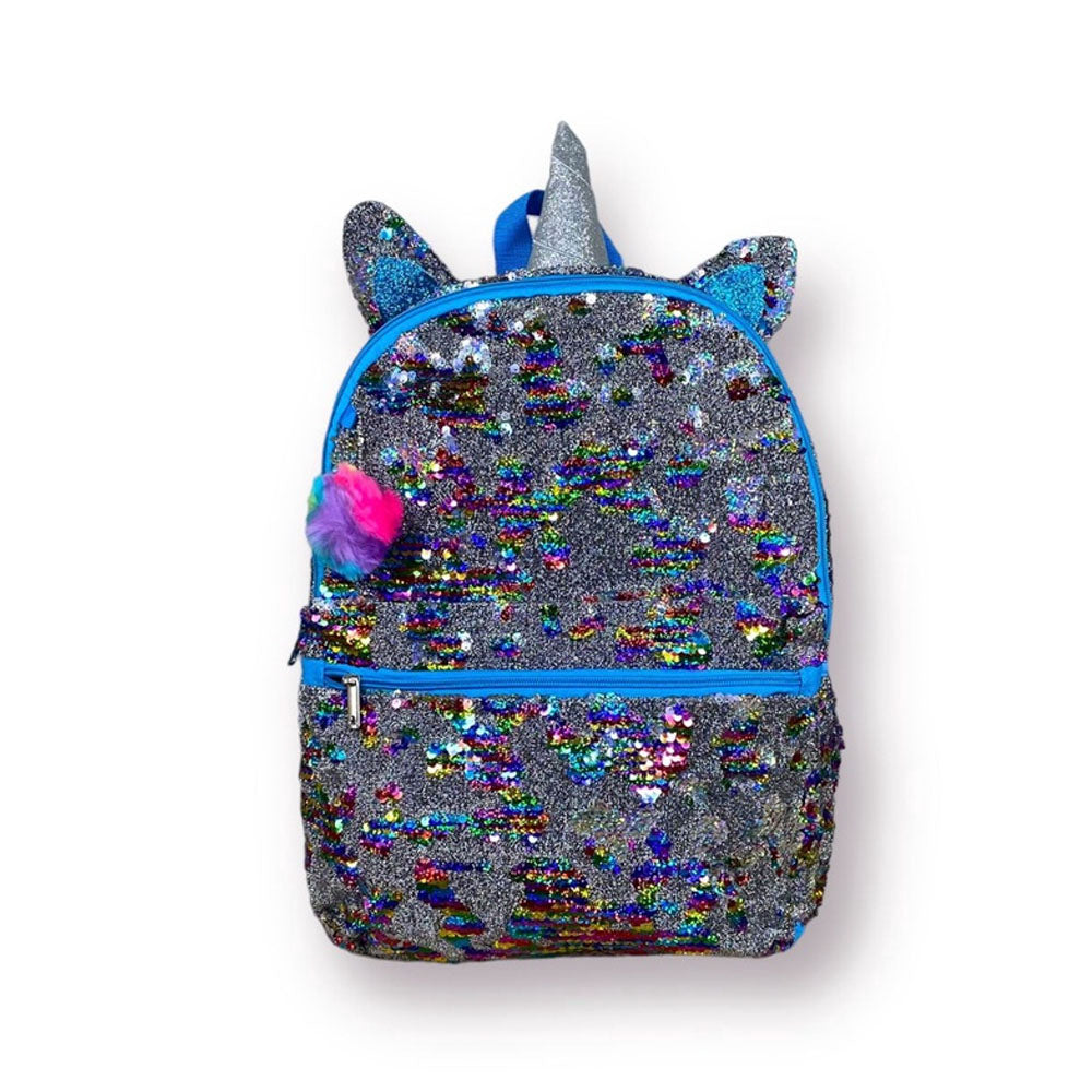 Mochila costa de paetê do unicórnio que muda de cor! 2 em 1, passando a mão em seus paetês ela troca de cor! Possui bolso principal com amplo espaço, bolso frontal para pequenos objetos e bolsos na lateral para por sua garrafinha de água, contém alças reguláveis e acolchoadas.