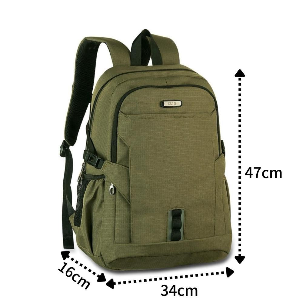 As alças acolchoadas proporcionam mais conforto durante o uso, além das costas reforçadas com espuma e tecido respirável que proporcionam ergonomia e ventilação. Enquanto os bolsos laterais e frontais facilitam o acesso a itens menores. Disponível em cores e versáteis, como preto e verde, a mochila Clio une estilo e eficiência para quem busca praticidade sem abrir mão da sofisticação.