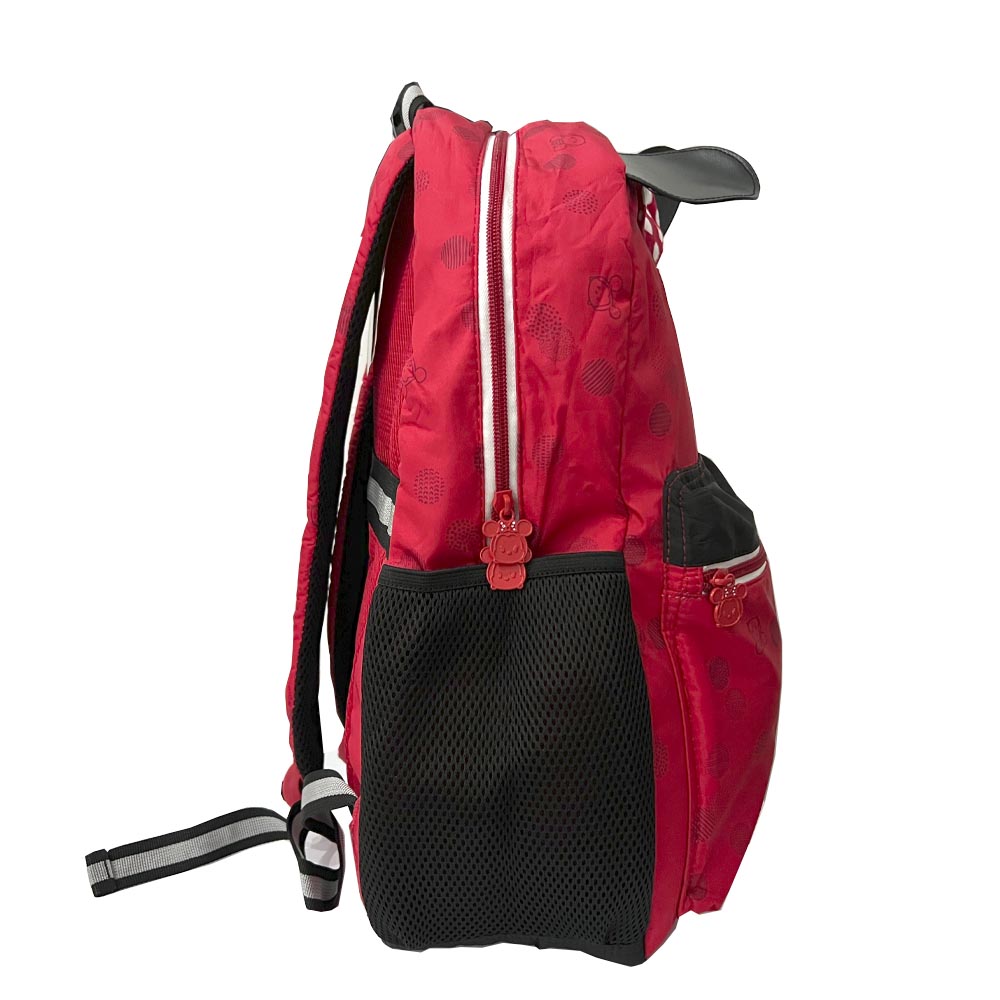 Confeccionada em material Soft de excelente qualidade, possui costas acolchoada, alças confortáveis e ajustáveis,bolso frontal com zíper, bolsos laterais telados,Logo emborrachado, puxadores em metal personalizado, bolso antifurto, além de orelhas e laço super fofos.