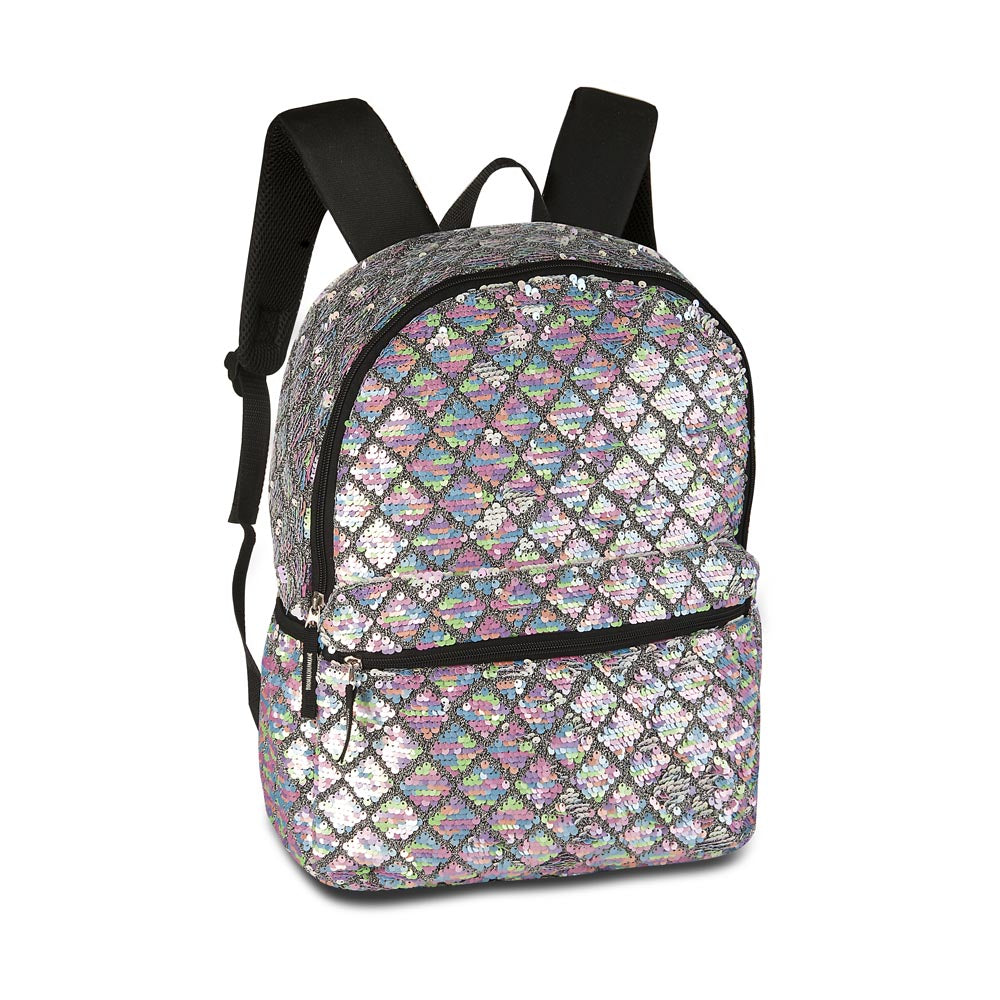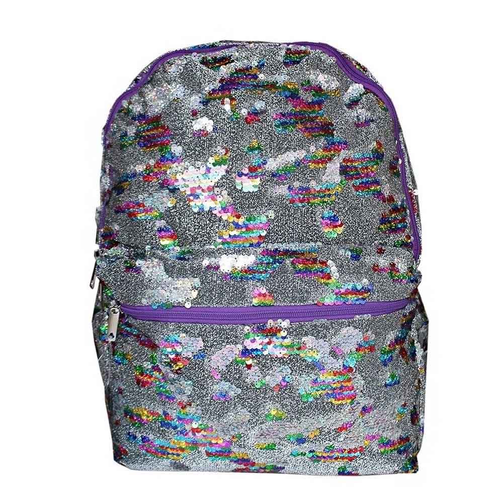 Mochila costa de paetê que muda de cor! 2 em 1, passando a mão em seus paetês ela troca de cor! Possui alças reguláveis e acolchoadas, forro duplo e bolso frontal com zíper.
