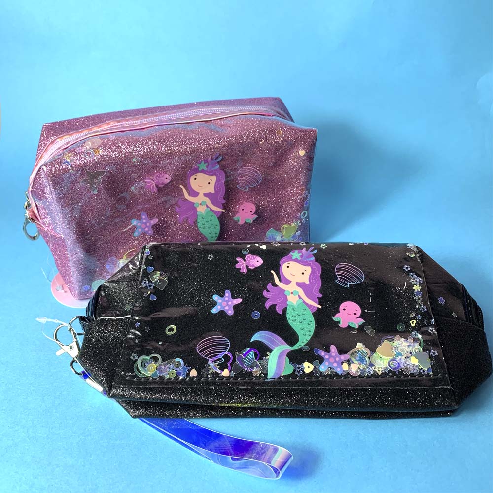 Fofura total esse estojo Sereia com glitter, ele cabe muitos itens e é ótimo para organização do material escolar. Também pode ser utilizado como necessaire ou bolsinha, e você pode levar para todo lugar com você!