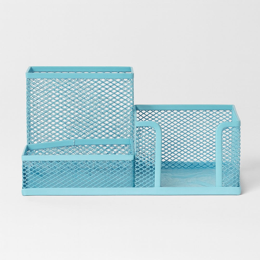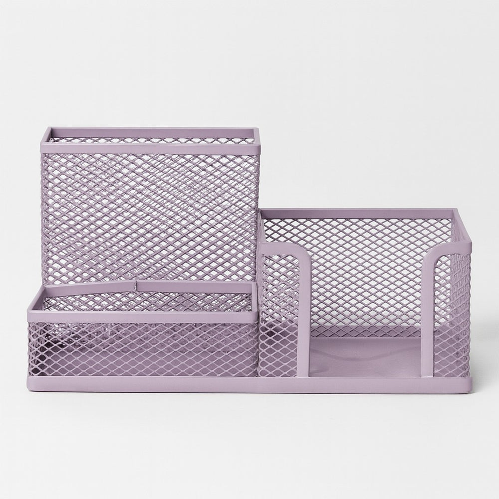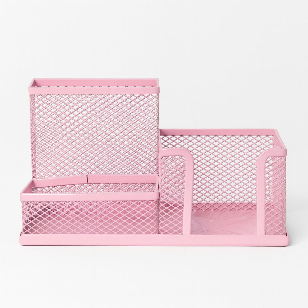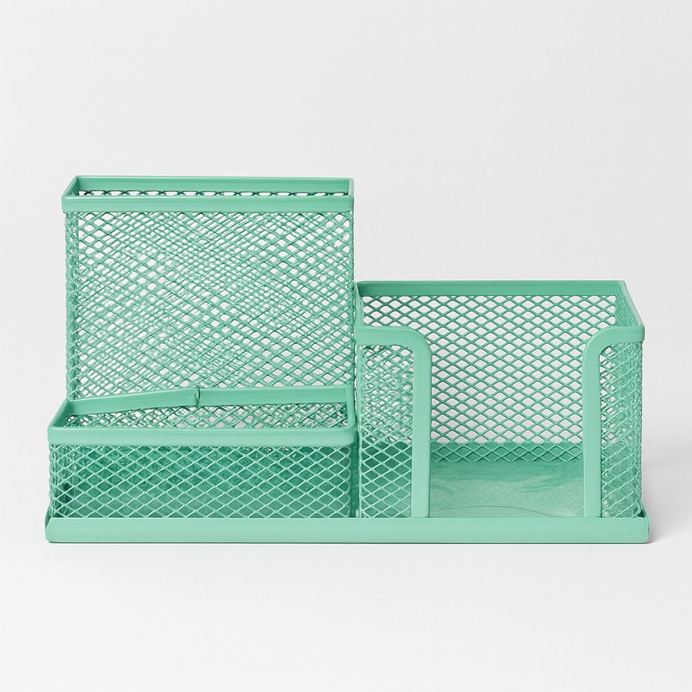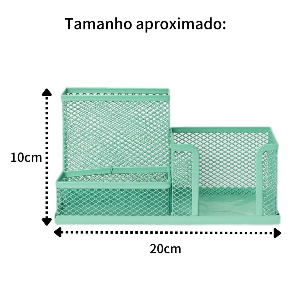 Cada modelo conta com três divisórias de diferentes tamanhos, perfeitas para acomodar lápis, canetas, marcadores, clipes, blocos de anotações e outros pequenos acessórios de escritório. Disponíveis em cores suaves e delicadas como rosa, verde, lilás e azul.