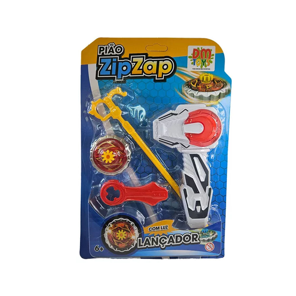 Contém: 1 pião Zip Zap com luz, 1 lançador, 1 cordão de lançamento e 1 ferramenta.