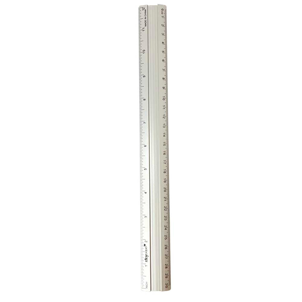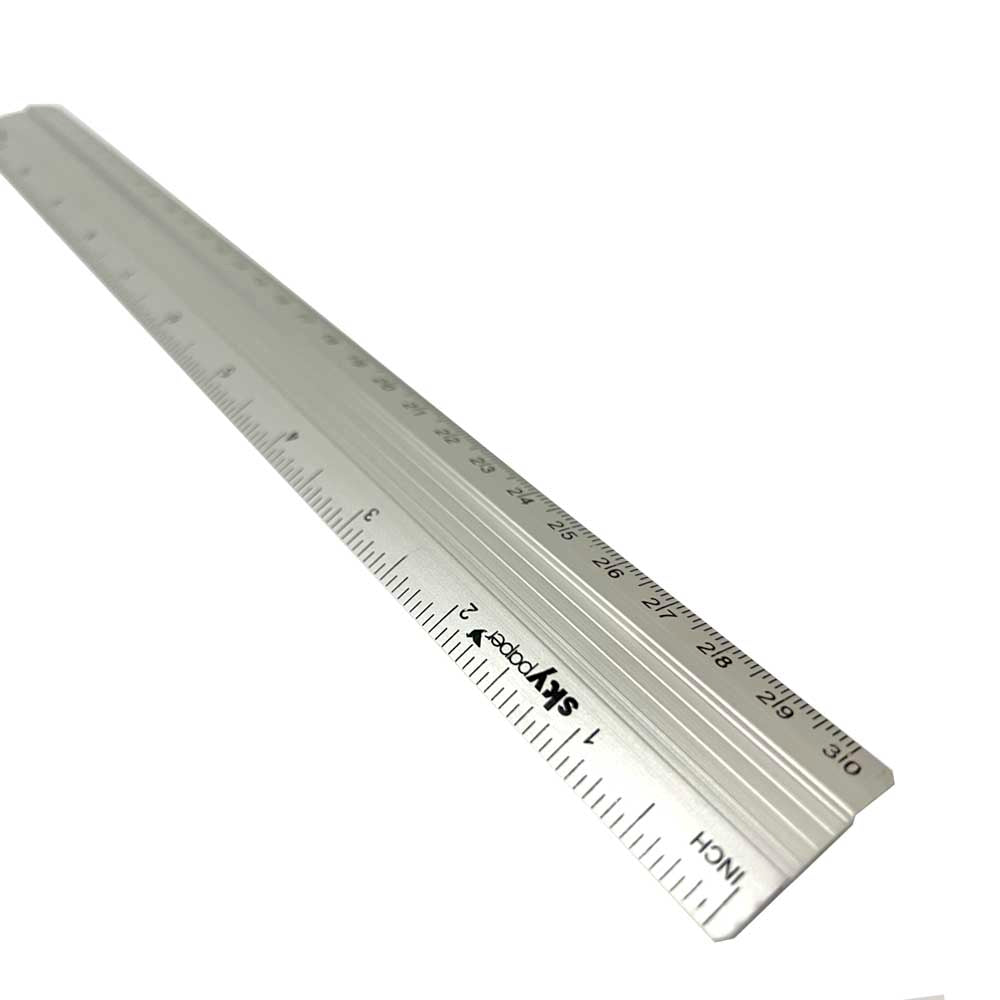 Régua produzida em alumínio, apresentando maior resistência e firmeza; ferramenta ideal para traçar segmentos de reta e medir distâncias pequenas com precisão no trabalho, escola ou faculdade.