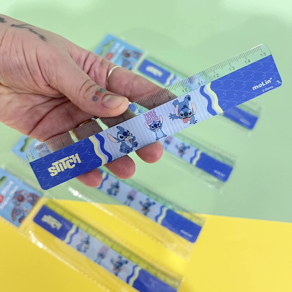 A Régua Stitch da Molin é super fofa! Com 15 cm, cabe perfeitamente no estojo. Super prática, é ideal para o dia a dia escolar.