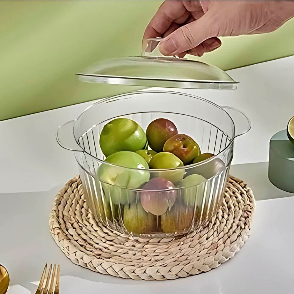 Sua tampa transparente permite visualizar o conteúdo e mantê-lo fresco por mais tempo.